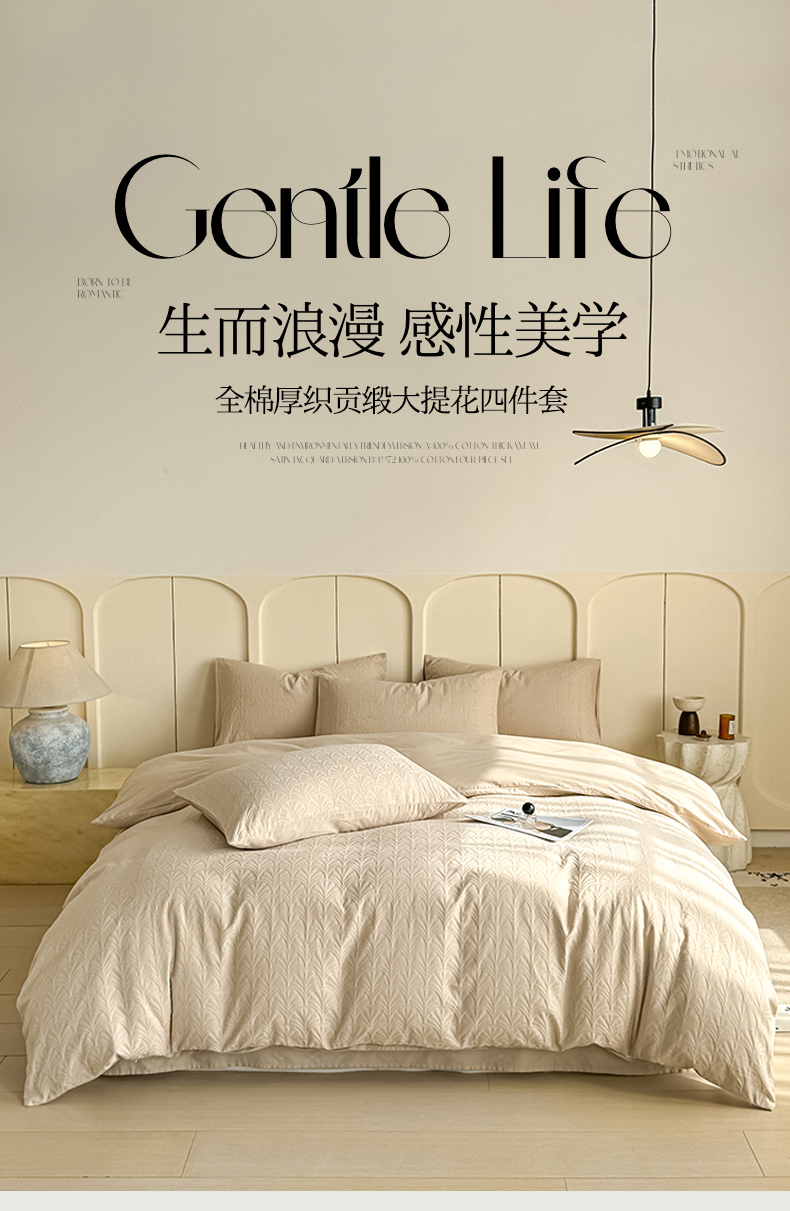 当前位置: 91家纺网 > 商品网购 > 床品套件 > 四件套 > 全棉普通四件套 > 灰鲸 2026新款全棉纯棉厚织贡缎大提花四件套 云锦-可可杏