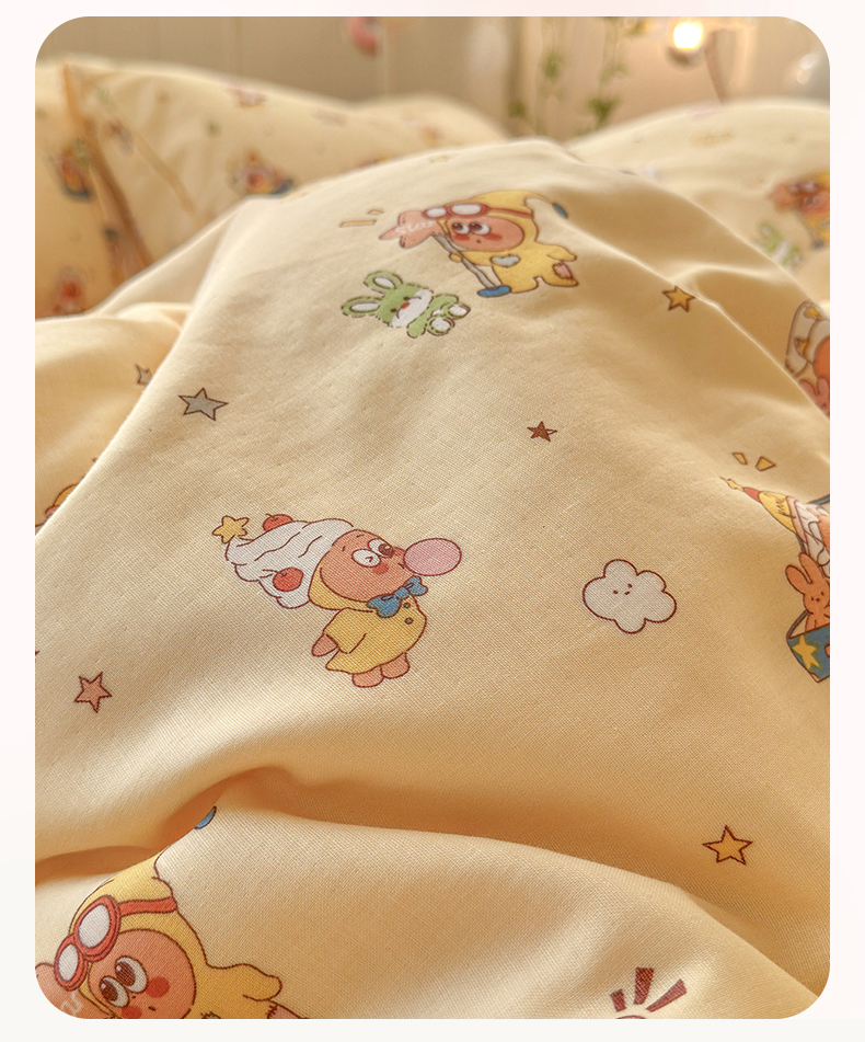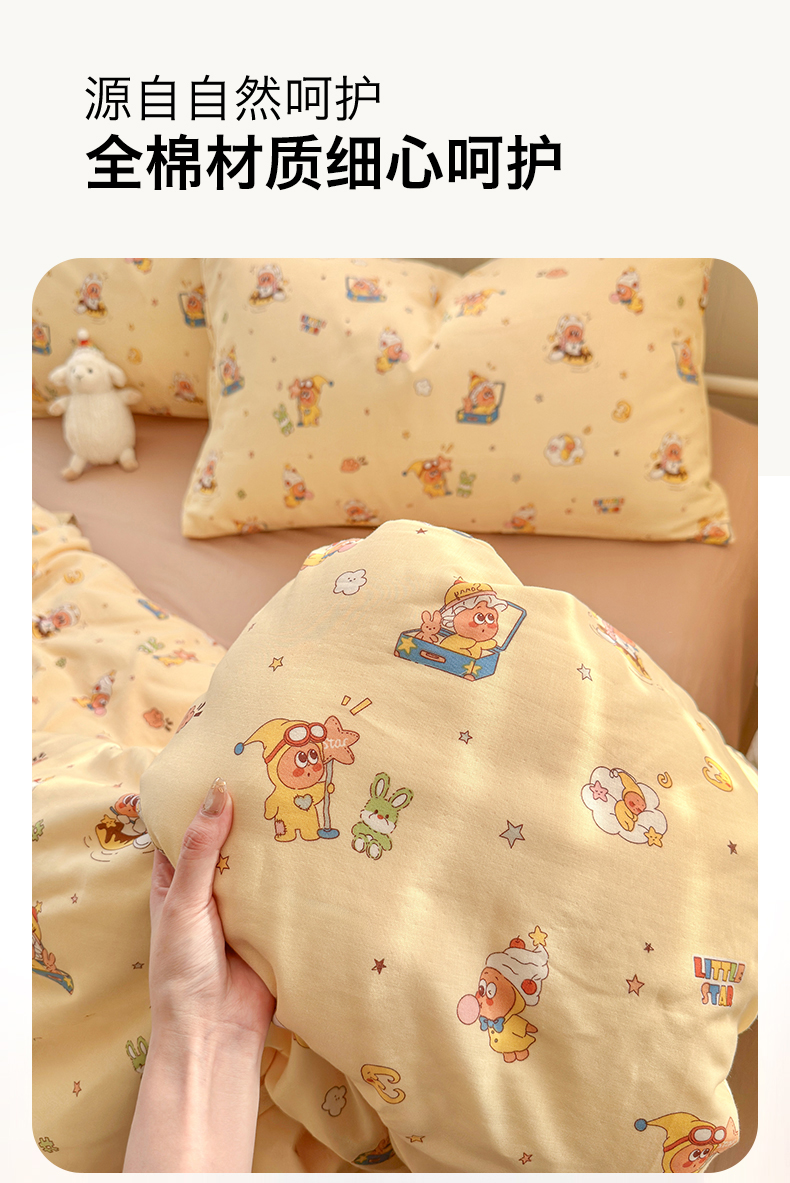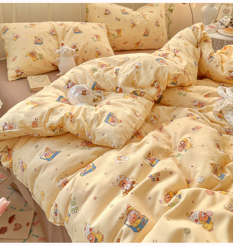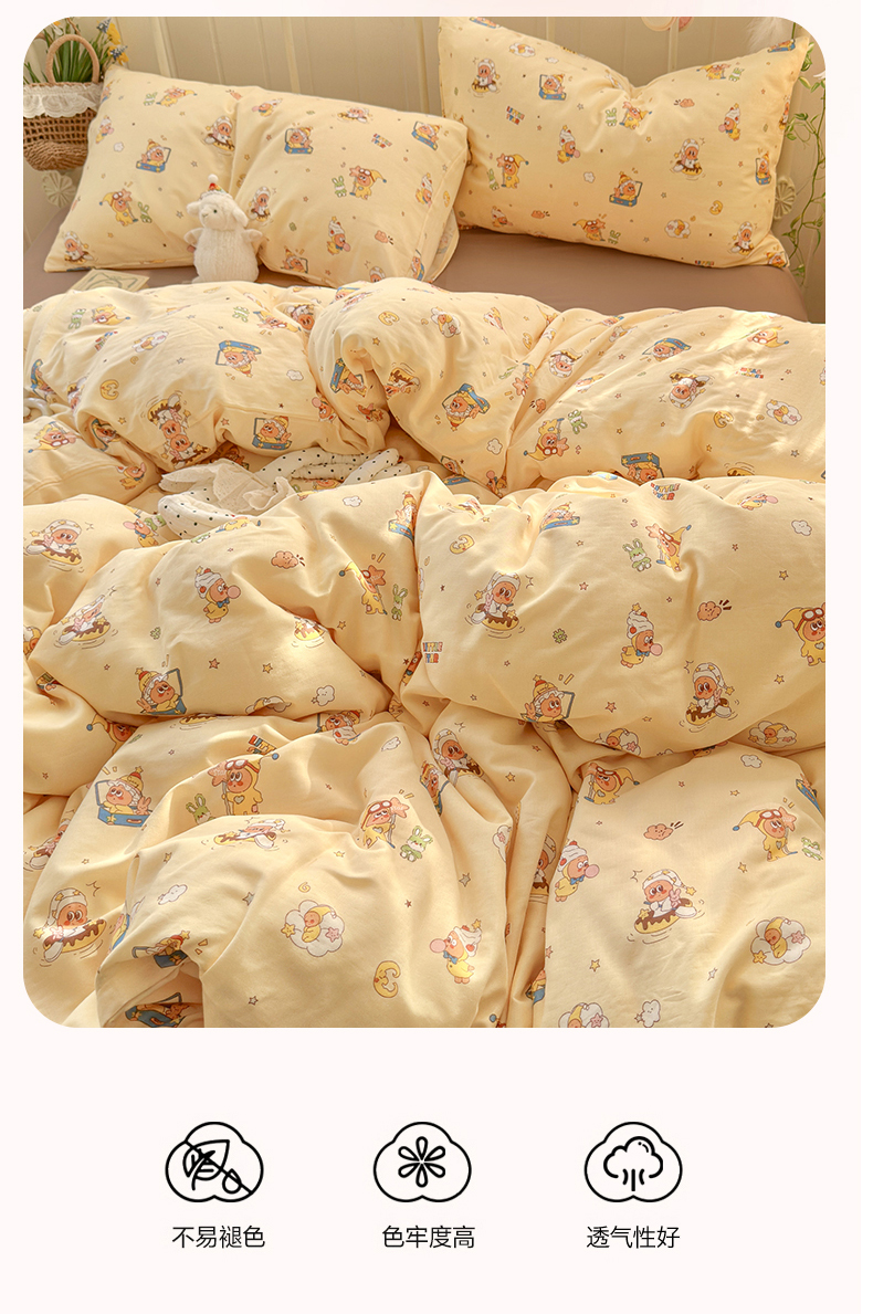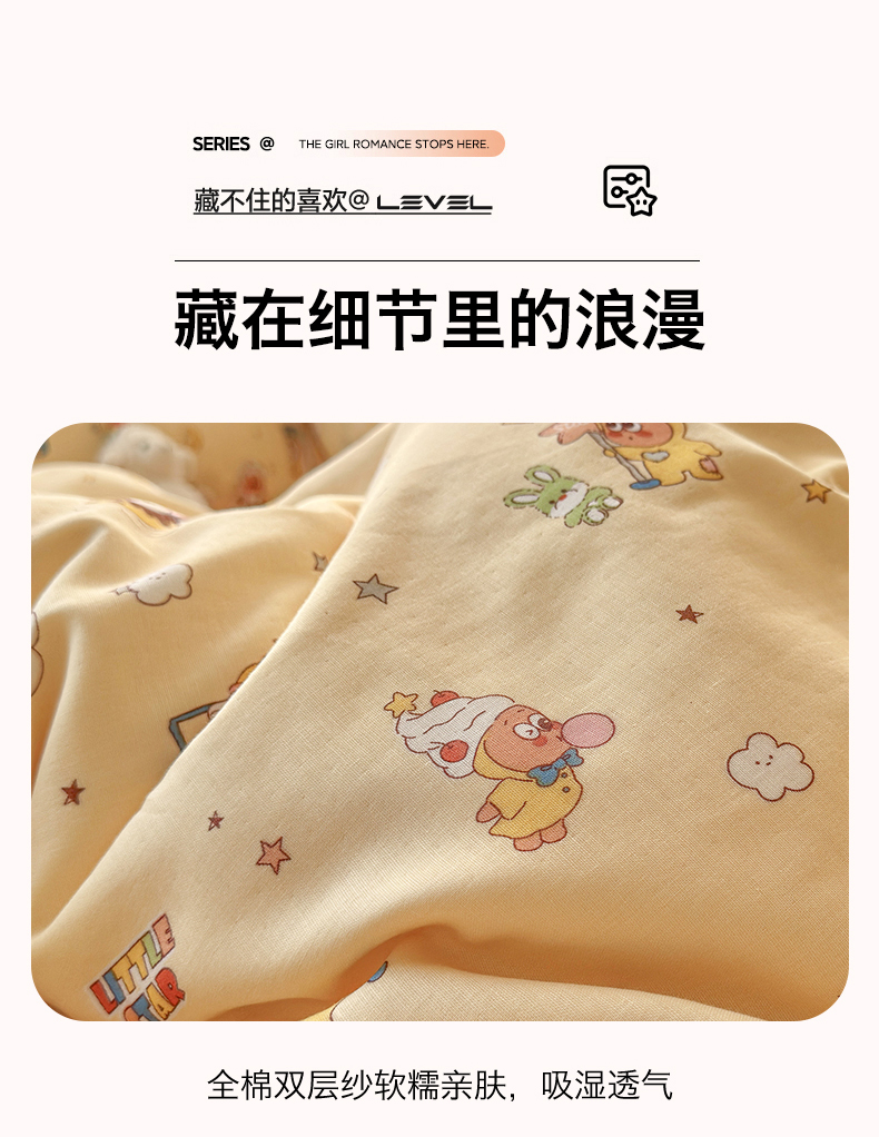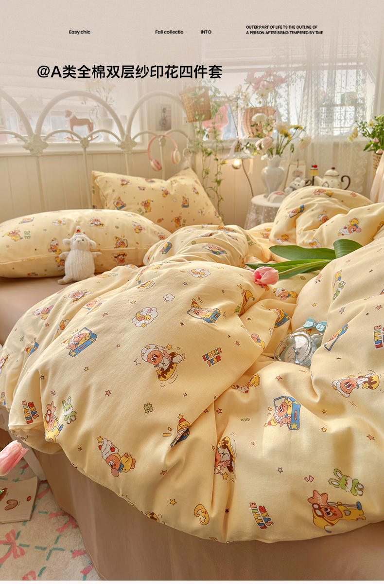 当前位置: 91家纺网 > 商品网购 > 床品套件 > 四件套 > 全棉普通四件套 > 名兮家居 2026春夏新款全棉纯棉A类双层纱四件套 双层纱-奶黄星仔