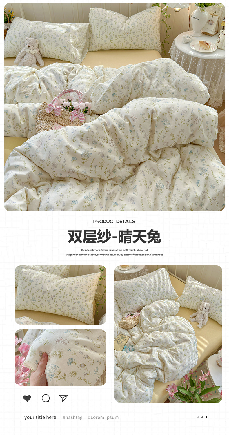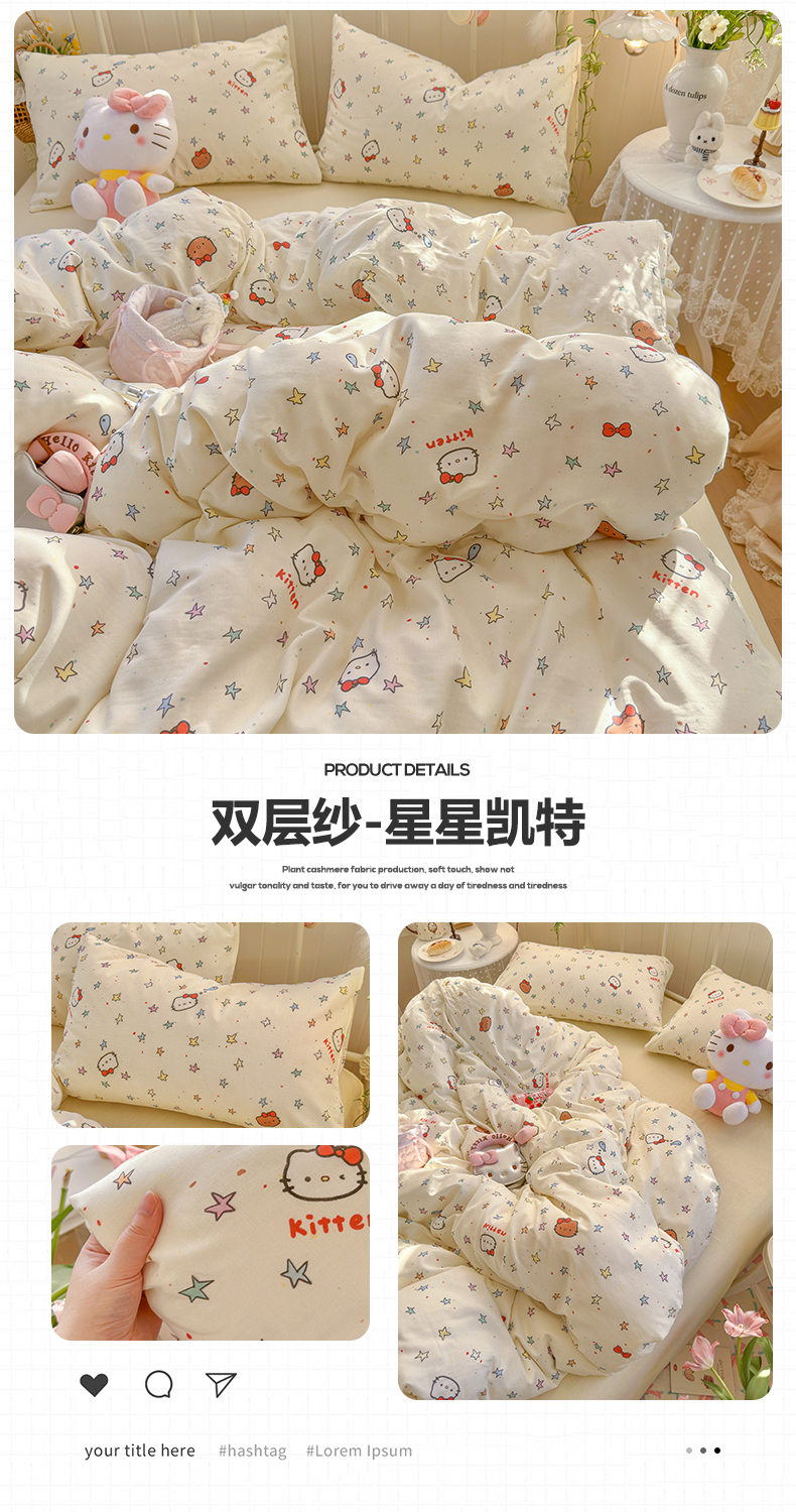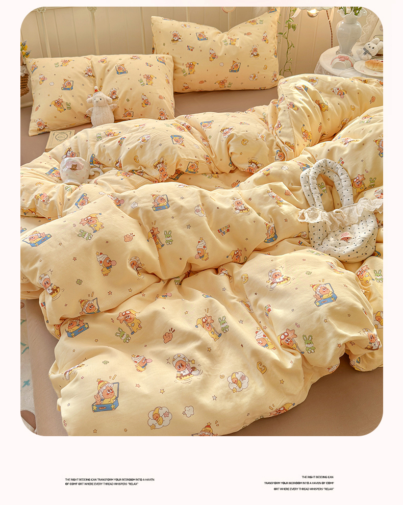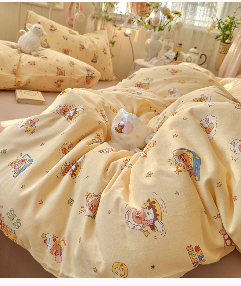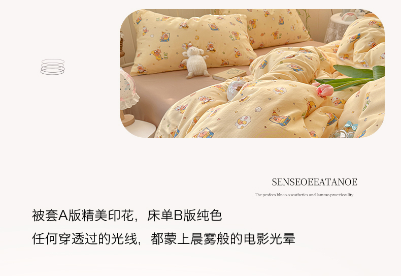 当前位置: 91家纺网 > 商品网购 > 床品套件 > 四件套 > 全棉普通四件套 > 名兮家居 2026春夏新款全棉纯棉A类双层纱四件套 双层纱-奶黄星仔