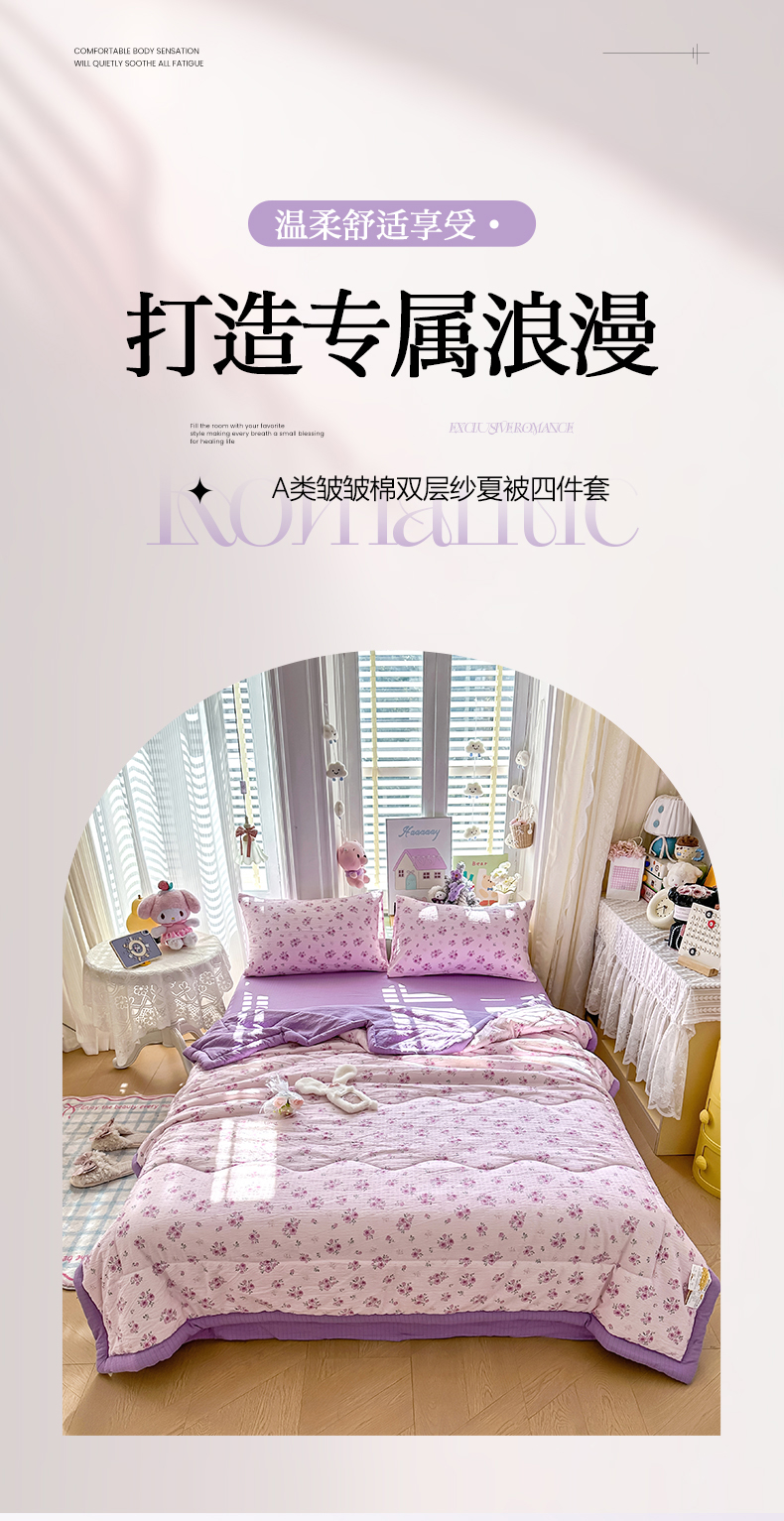 当前位置: 91家纺网 > 商品网购 > 床品套件 > 四件套 > 其它四件套 > 瑞禾家纺 2026新款皱皱棉双层纱夏被四件套下载文件包含买家秀 午后甜梦