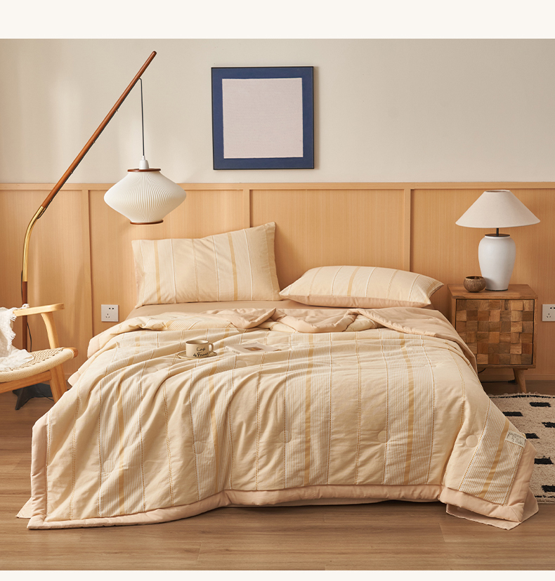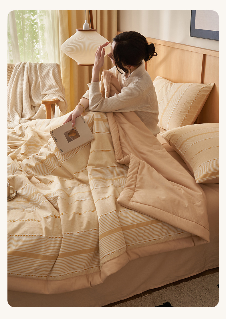 • 91家纺网 家纺一手货源 找家纺 简如 2026新款里外纯棉色织提花棉花夏被空调被夏凉被四件套瑞拉系列 瑞拉-米黄