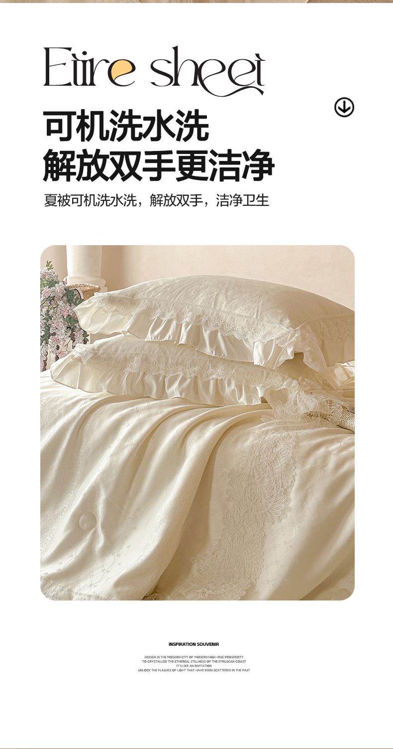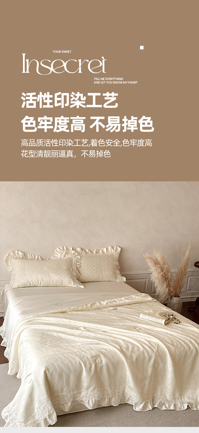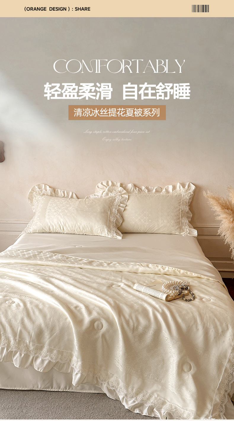 • 91家纺网 家纺一手货源 找家纺 首尔家纺 2026春夏新款水洗真丝冰丝夏被夏凉被空调被 拾光若梦-米白