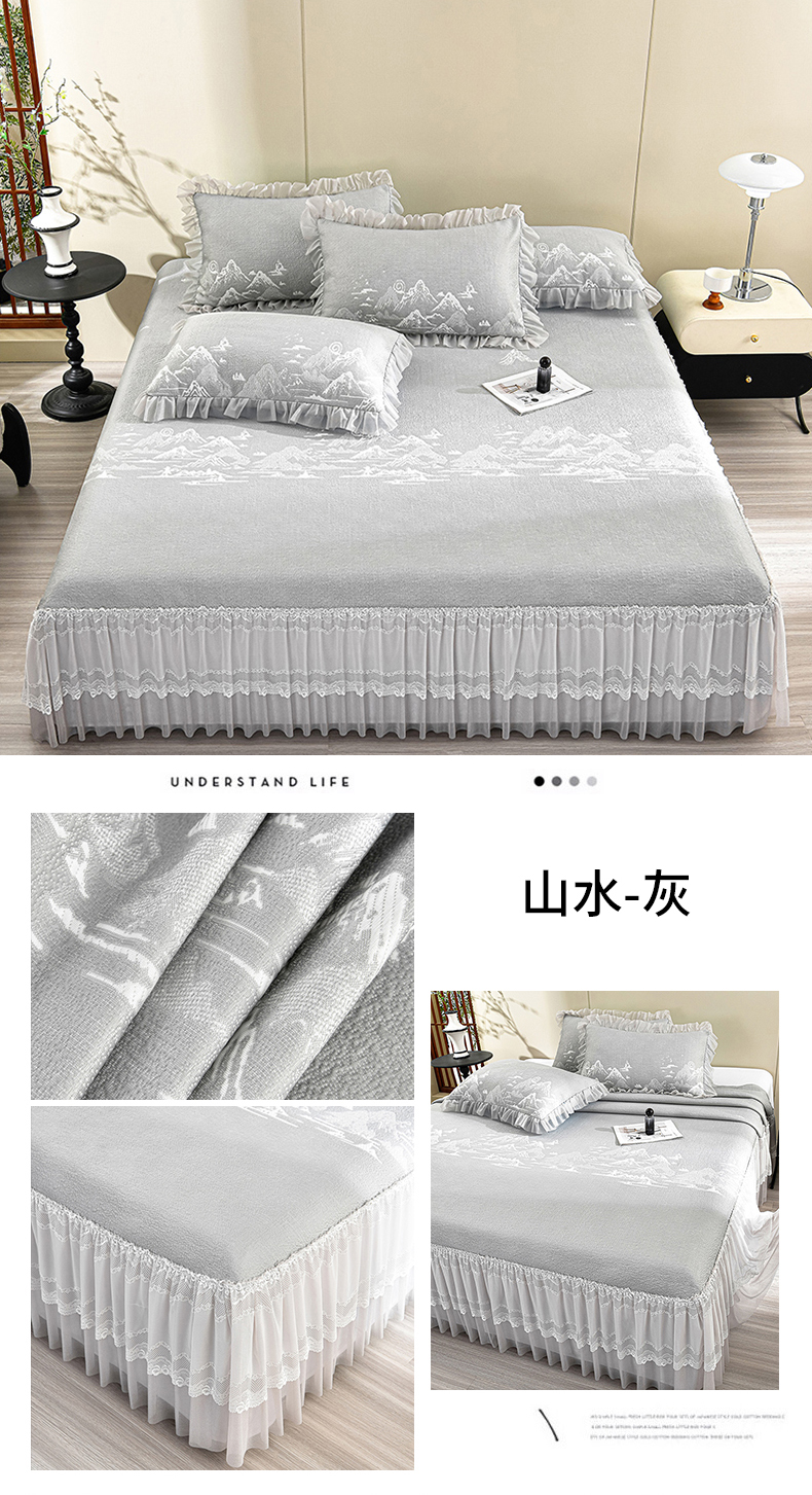 (总)畅畅家纺 2026新款提花面料530克PE凉感因子冰豆豆凉席床裙三件套,漫花-粉,漫花-灰,漫花-蓝,漫花-绿,山水-粉,山水-灰,山水-蓝,山水-绿