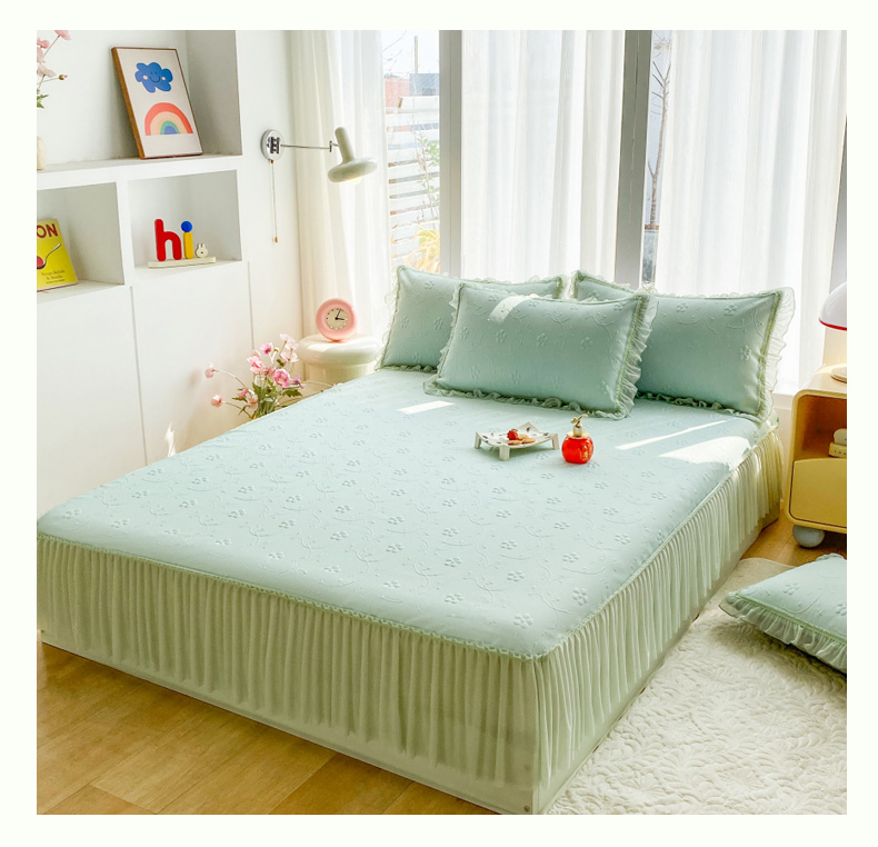 (总)畅畅家纺 2026新款提花面料530克PE凉感因子冰豆豆凉席床裙三件套,漫花-粉,漫花-灰,漫花-蓝,漫花-绿,山水-粉,山水-灰,山水-蓝,山水-绿