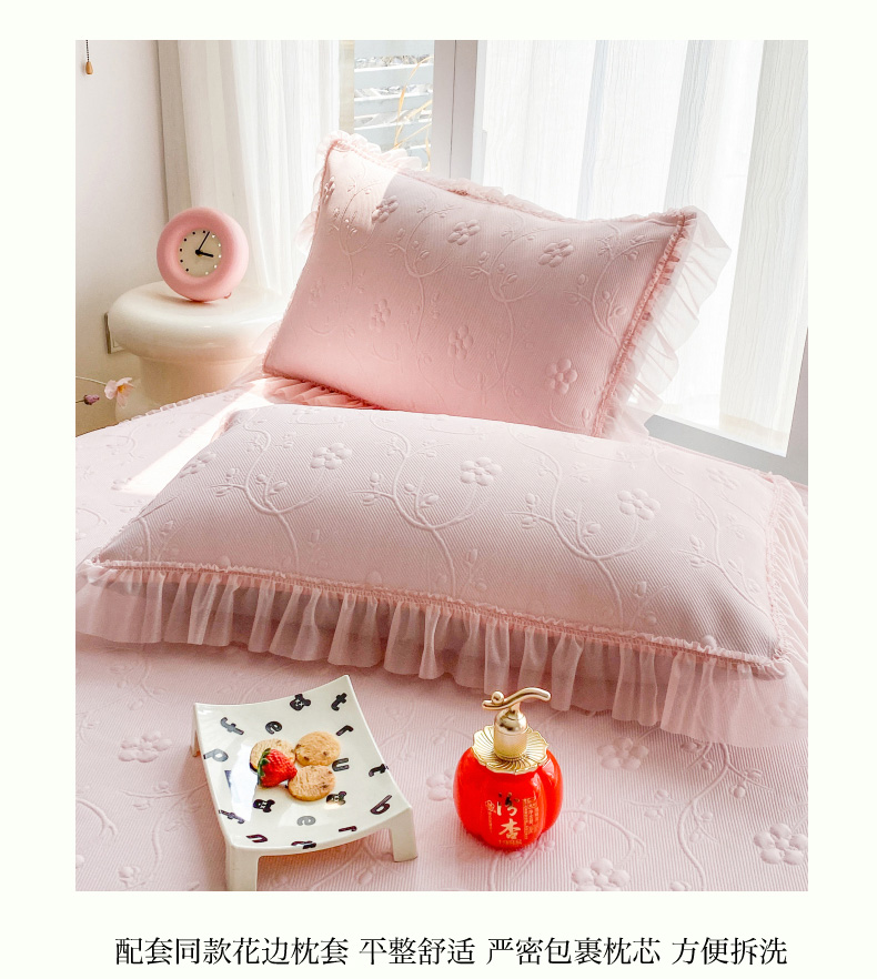 (总)畅畅家纺 2026新款春夏高档轻奢韩版提花花边床盖四件套水洗真丝冰丝套件,花边-粉色,花边-米白色,花边-蓝色,花边-浅玉