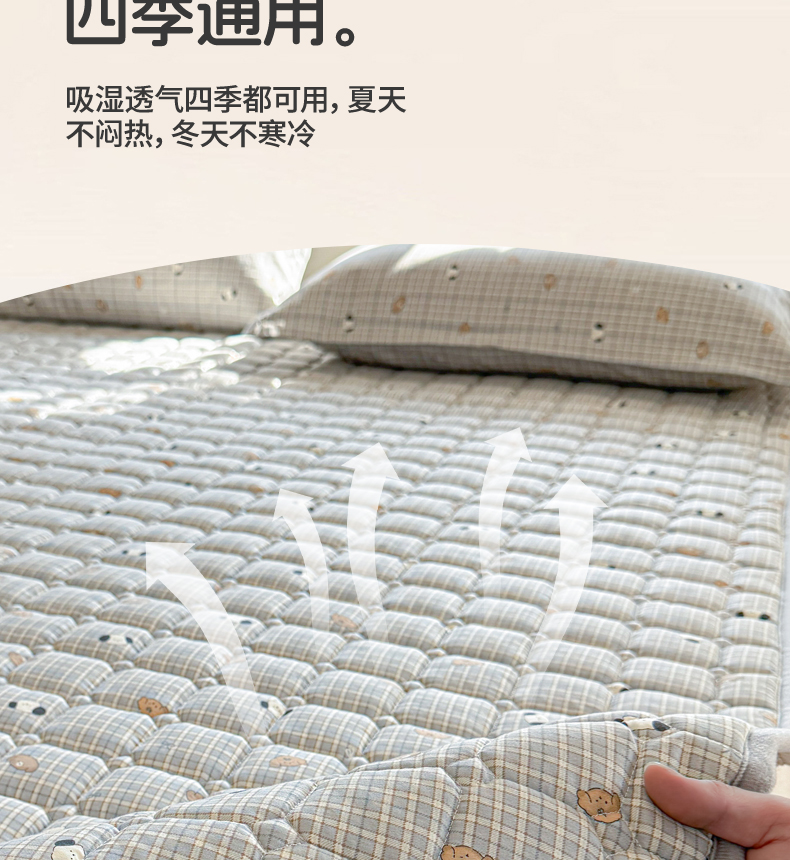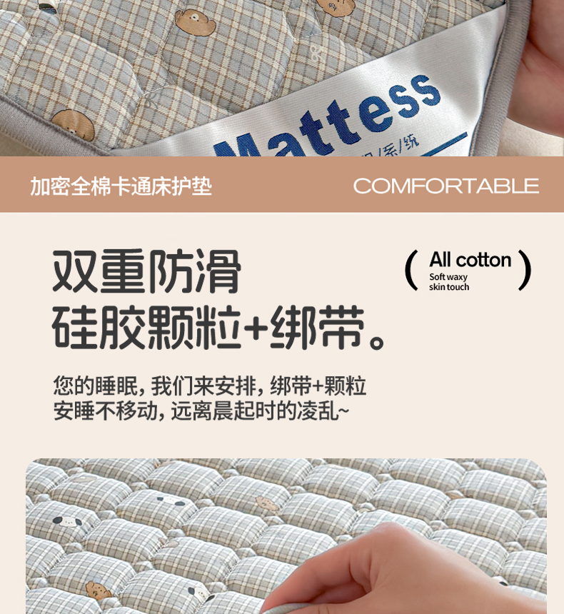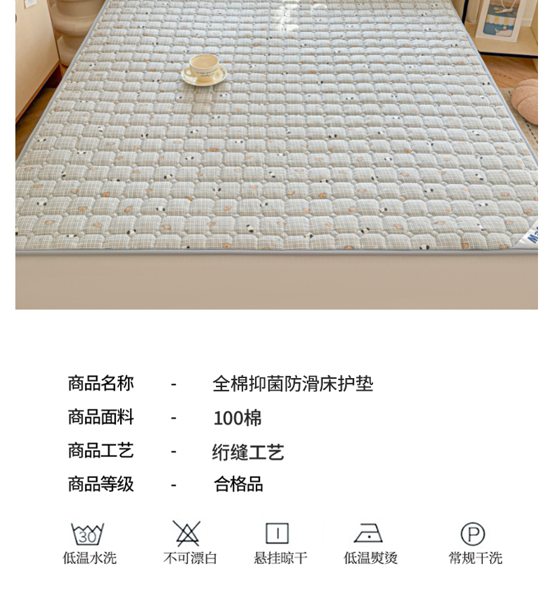 (总)丽诺床垫 2024新款升级款全棉13372抗菌防滑床护垫,灰色,玉色 ,卡其色 ,秋蓝,白色