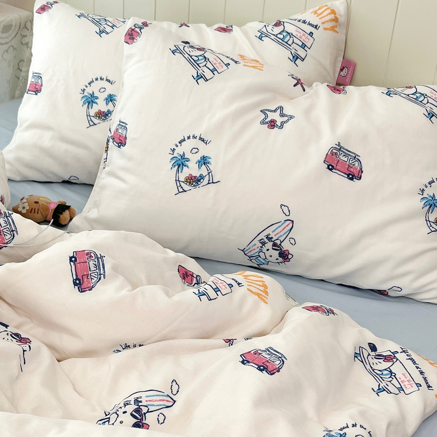 当前位置: 91家纺网 > 商品网购 > 床品套件 > 四件套 > 全棉普通四件套 > 荣轩家居 2026新款三丽鸥正版授权全棉纯棉双层纱四件套(铺床版) HelloKitty -宅家日记