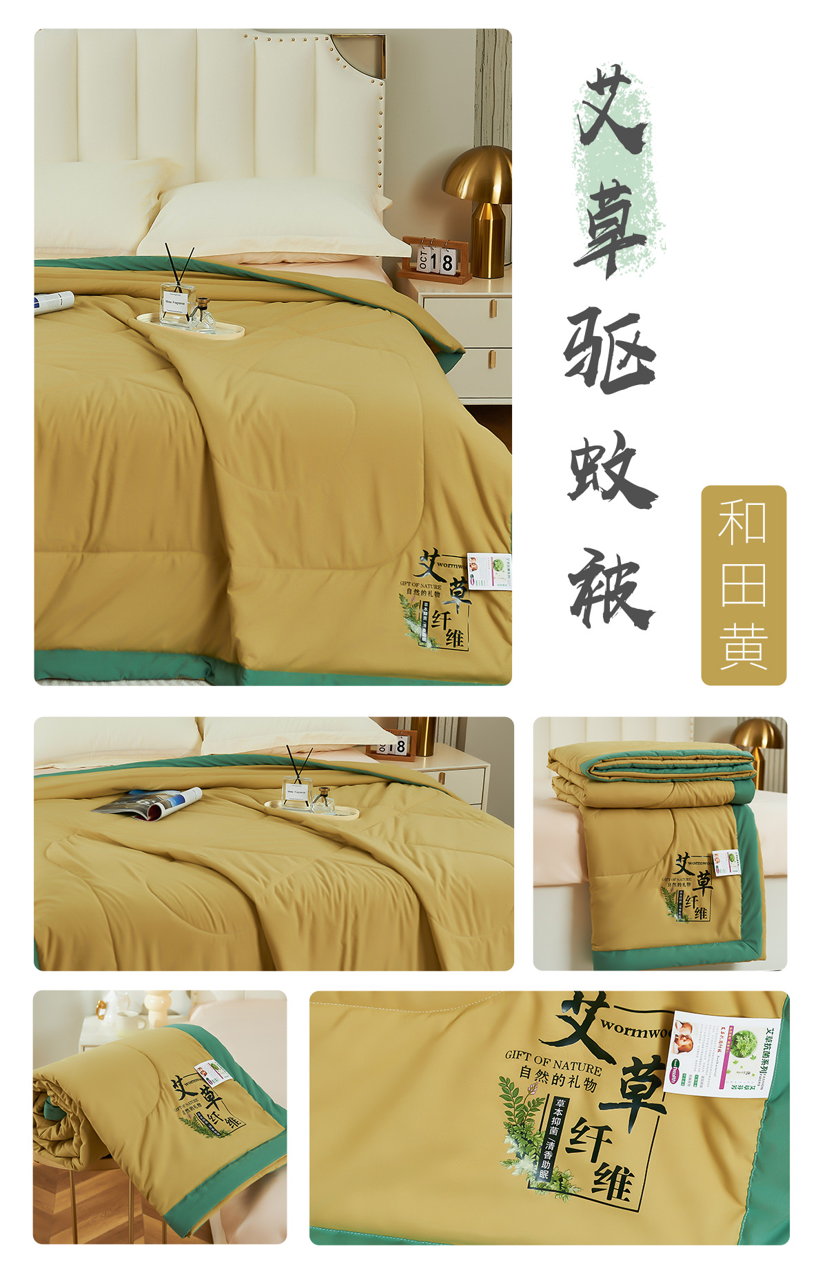 (总)憨豆家纺 2026新款艾草夏被空调被薄被子艾草驱蚊夏凉被礼品被子,橄榄绿,高级灰,和田黄,火欧橘,暖心粉,天际蓝