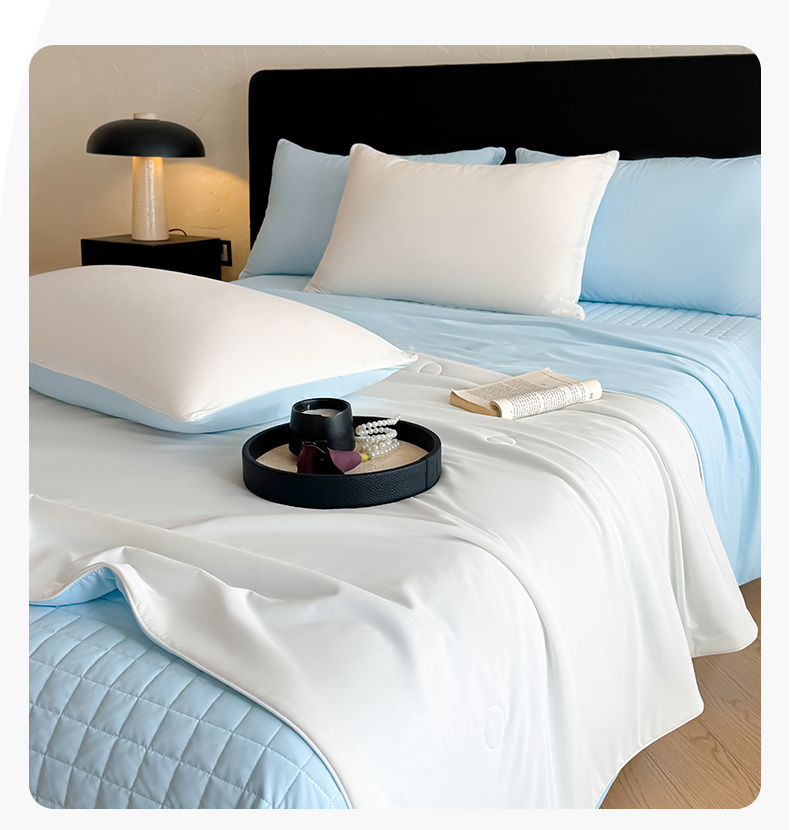 被子 > 夏被 > 羚羊语家纺 2026新款仿锦氨凉感夏被床盖四件套夹棉床盖纯色轻奢凉感丝夏凉被空调冰丝云母凉感被子被芯 云上舞白