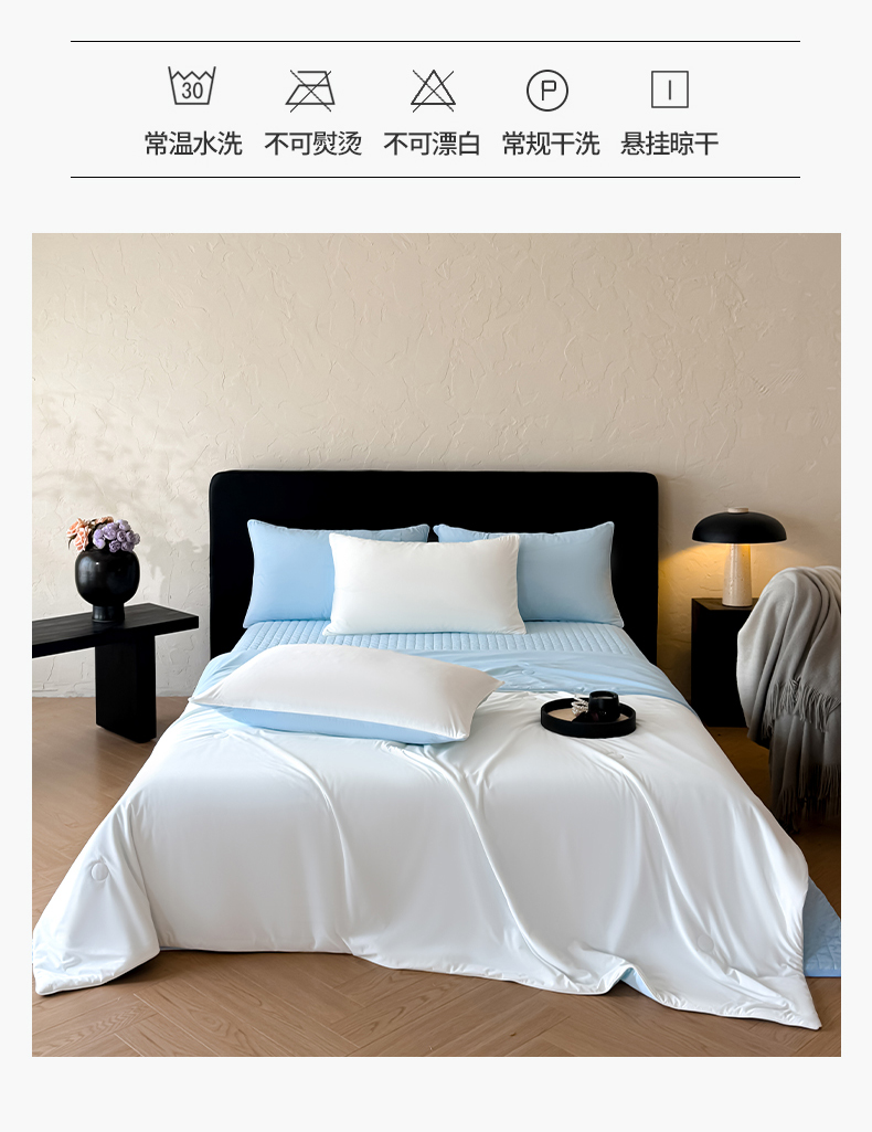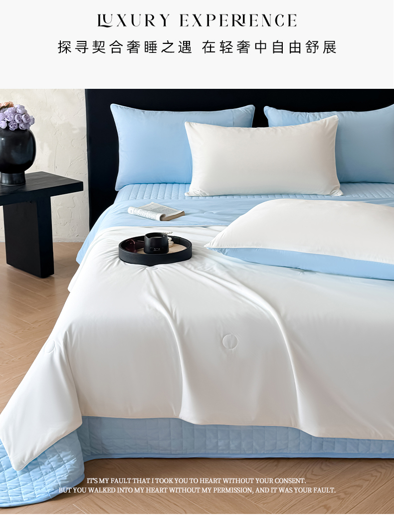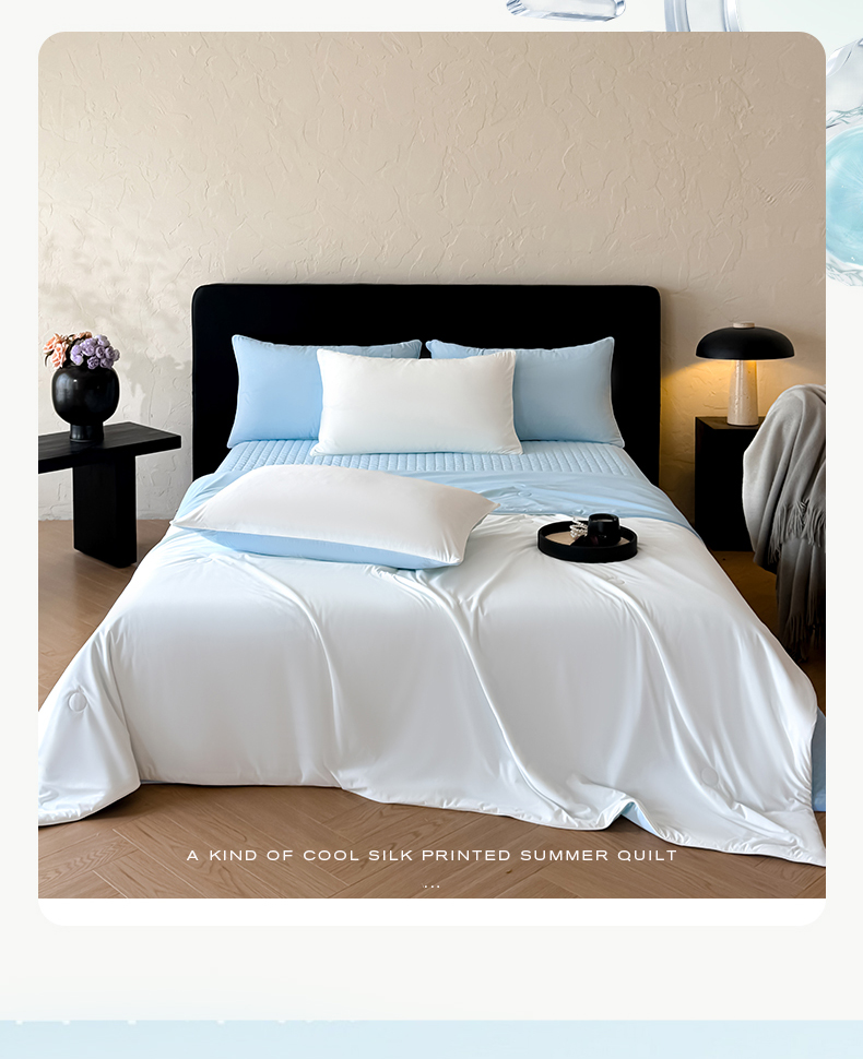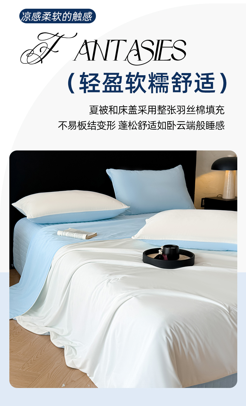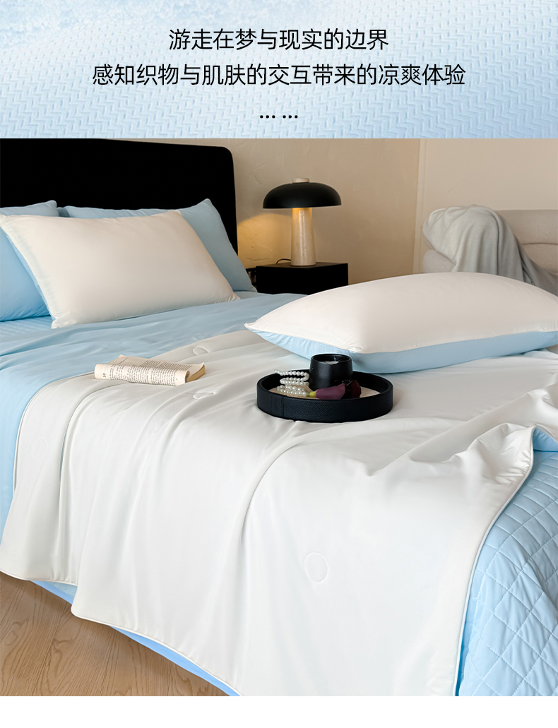 商品名称:羚羊语家纺 2026新款仿锦氨凉感夏被床盖四件套夹棉床盖纯色轻奢凉感丝夏凉被空调冰丝云母凉感被子被芯 云上舞白