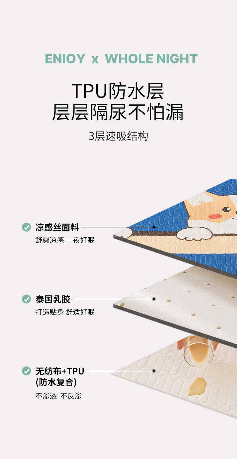(总)佳鸿家纺 2026新款冰丝防水乳胶凉席隔尿垫姨妈垫床垫保护垫单人床双人床可机洗,防水蔚蓝柯基,防水趴趴狗,防水汪汪柴犬,防水太空星球,防水白熊-咖