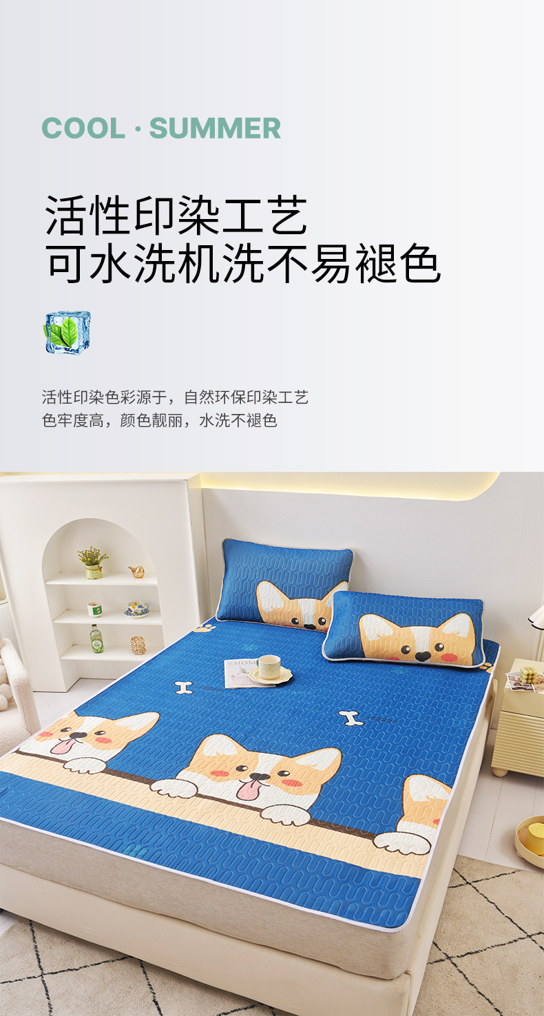 (总)佳鸿家纺 2026新款卡通乳胶凉席二件套三件套冰丝软席空调席跨境爆款,抱抱,柴犬,柯基,恐龙,萝卜兔,趴趴狗,太空星球