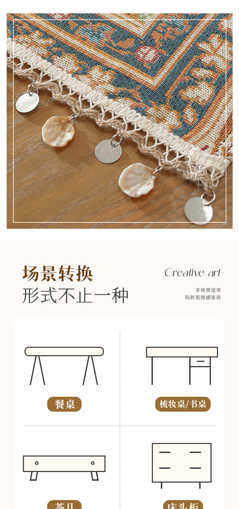 当前位置: 91家纺网 > 商品网购 > 居家布艺 > 餐桌布 > (总)南通大梧纺织 2026新款波西米亚复古伊芙琳桌旗