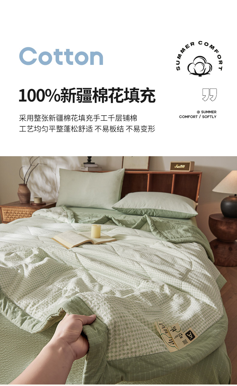 (总)熙宴家纺 2025新款水洗棉100%新疆棉花夏被-棉白,棉白+灰,棉白+蓝,棉白+绿,棉白+玉