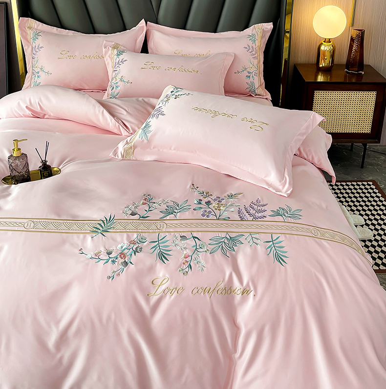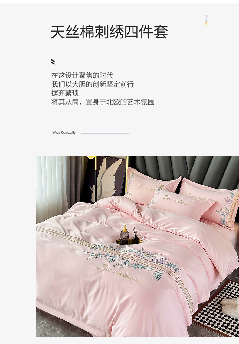 (总)玉相逢 2026新品天丝双拼刺绣四件套-卡骆驰系列,樱花粉,梦幻紫,天空蓝