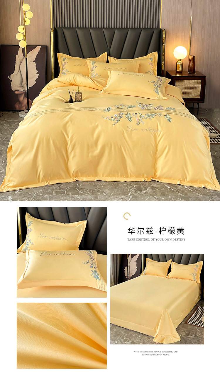 商品名称:玉相逢 2026新款天丝棉轻奢刺绣四件套-华尔兹系列 华尔兹-柠檬黄