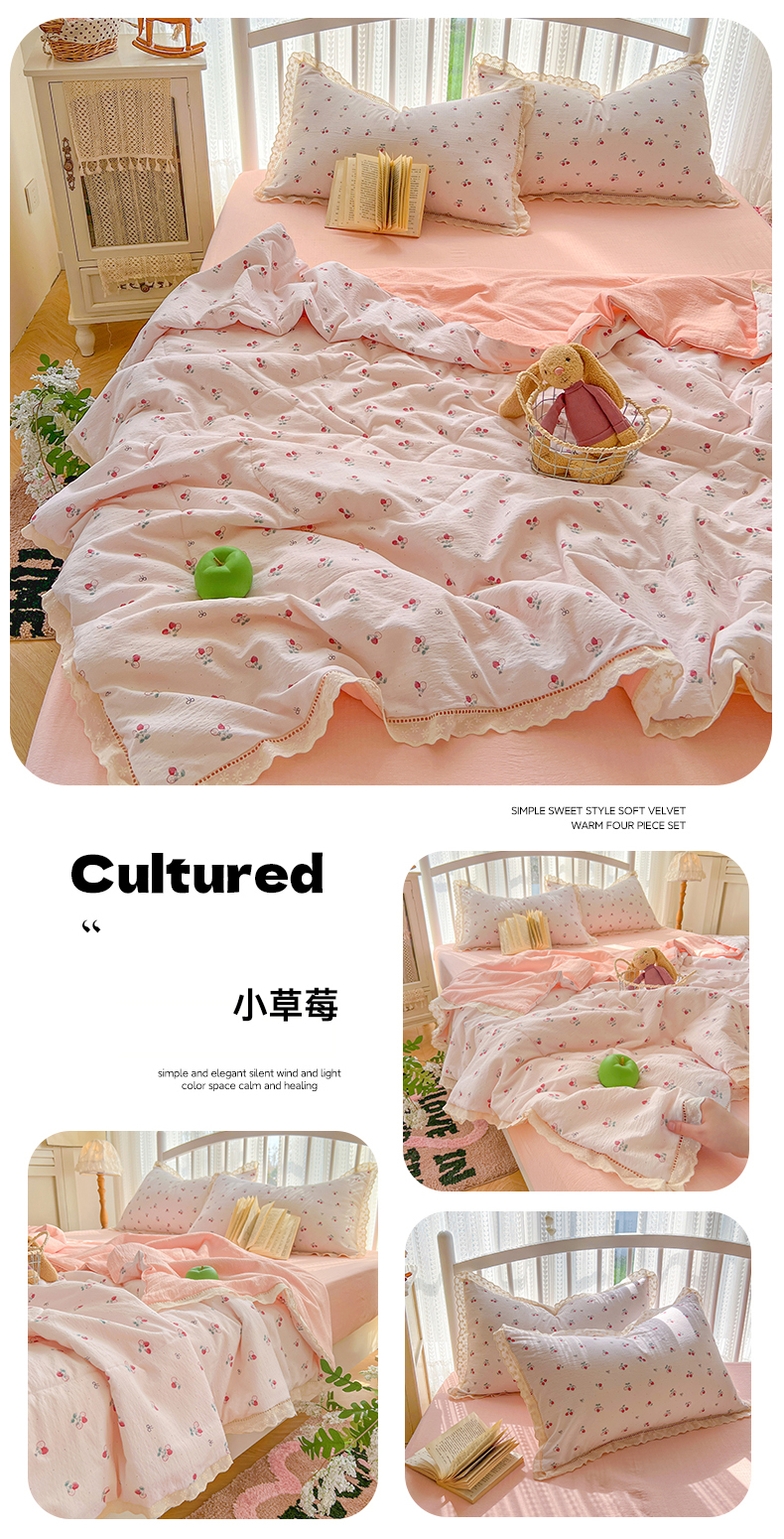 商品名称:港岛妹妹 2026新款镂空花边夏被 夏被四件套 浅茉樱藤