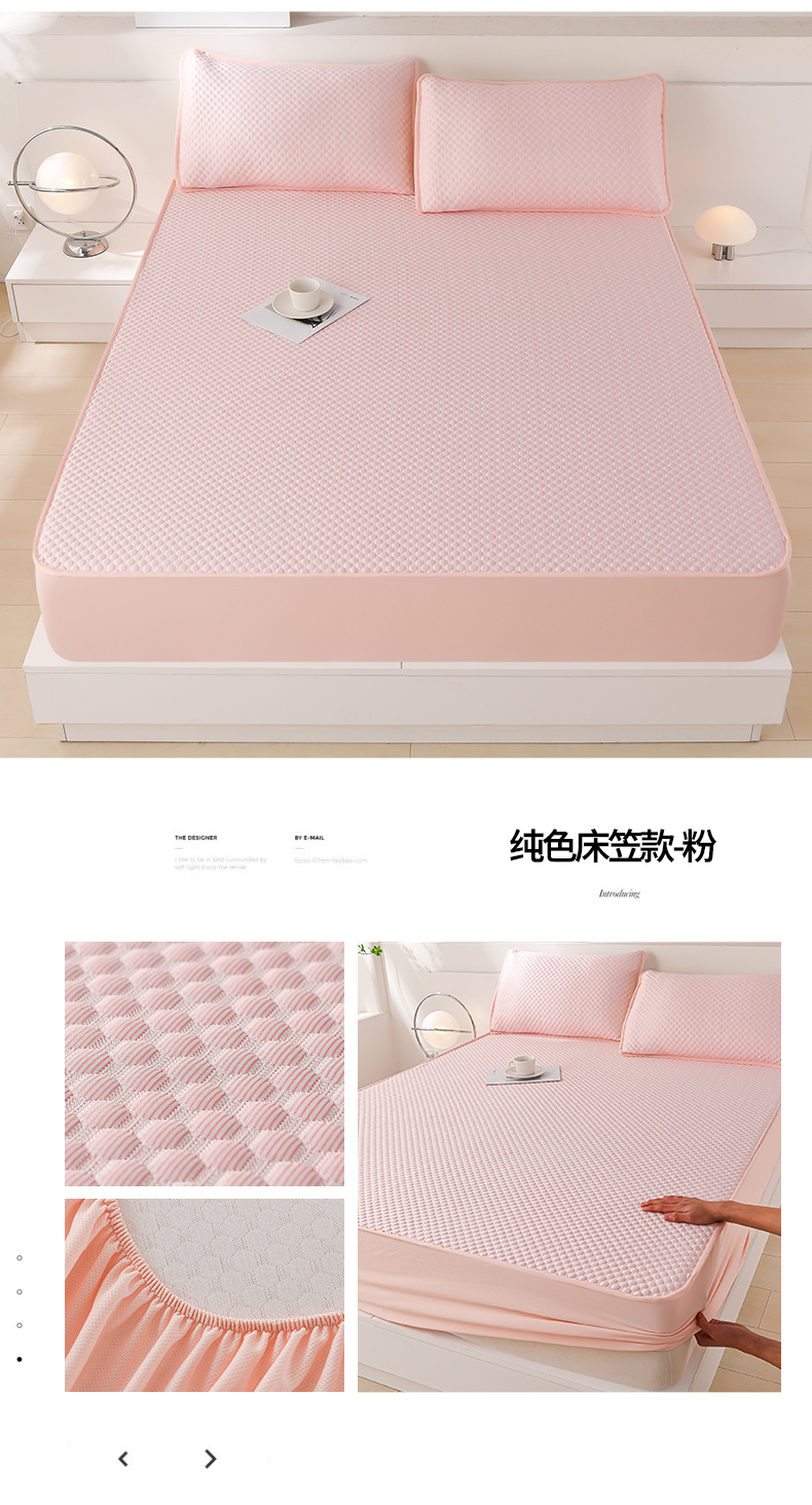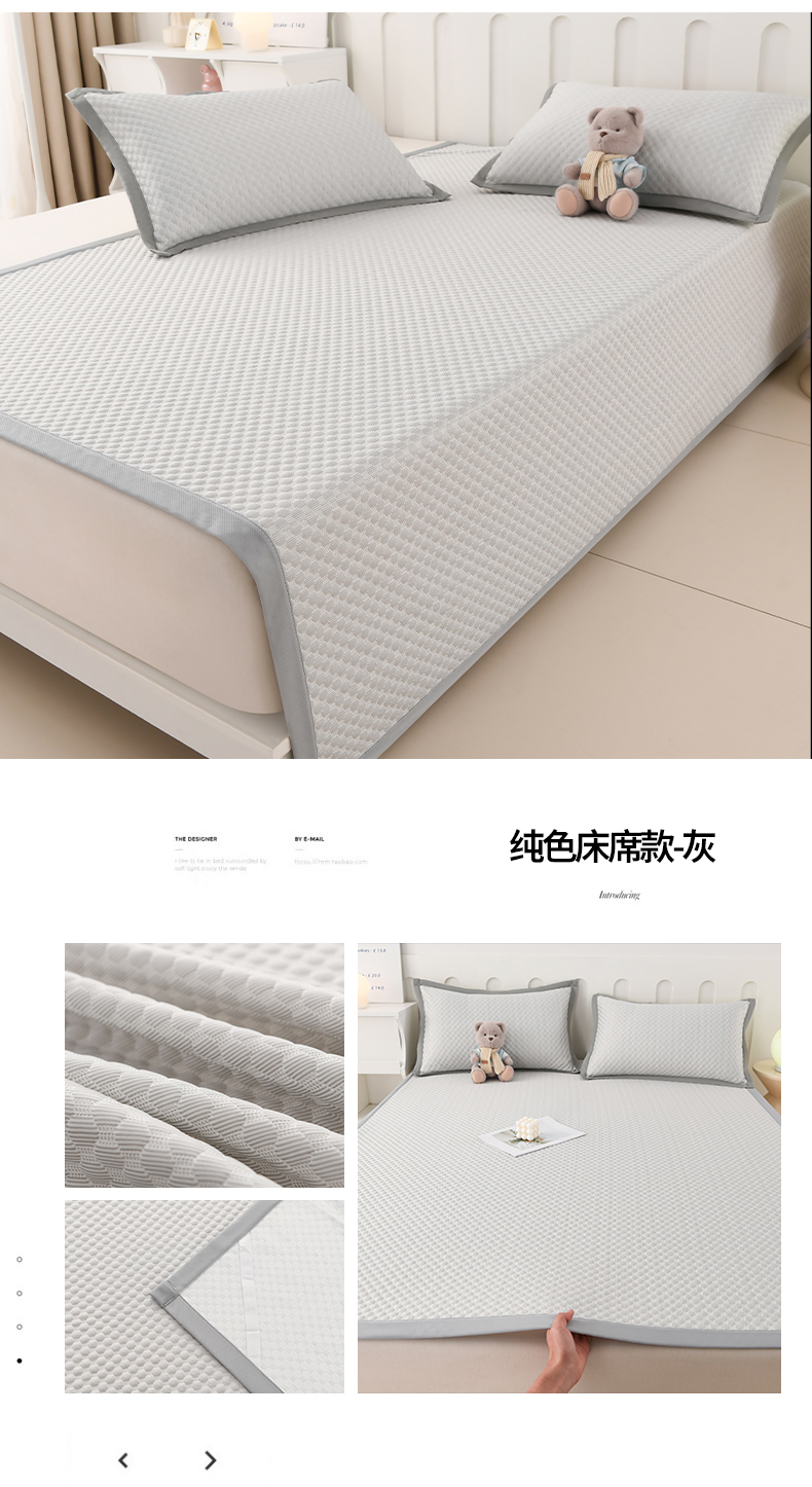 • 91家纺网 家纺一手货源 找家纺 席匠 2026新款冰豆豆床裙纯色款凉席席子凉席三件套 纯色床席款-粉