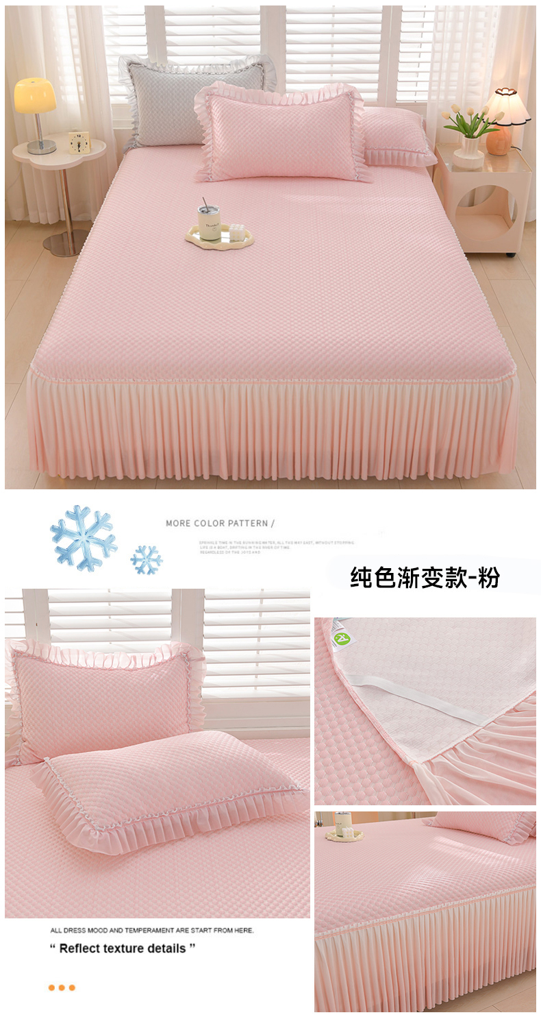 • 91家纺网 家纺一手货源 找家纺 席匠 2026新款冰豆豆床裙纯色款凉席席子凉席三件套 纯色渐变床裙款-蓝