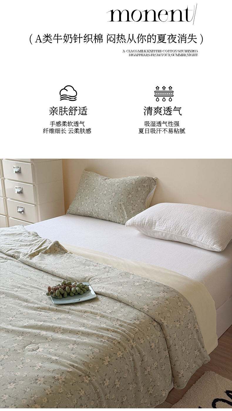 暖生活 2026春夏新款A类针织锦氨绵绵冰双感夏被夏凉被空调被 绿野白茶