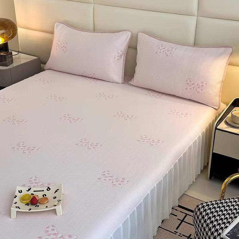 商品名称:席匠 2026新款蝴蝶结床裙凉席席子三件套 蝴蝶结-绿