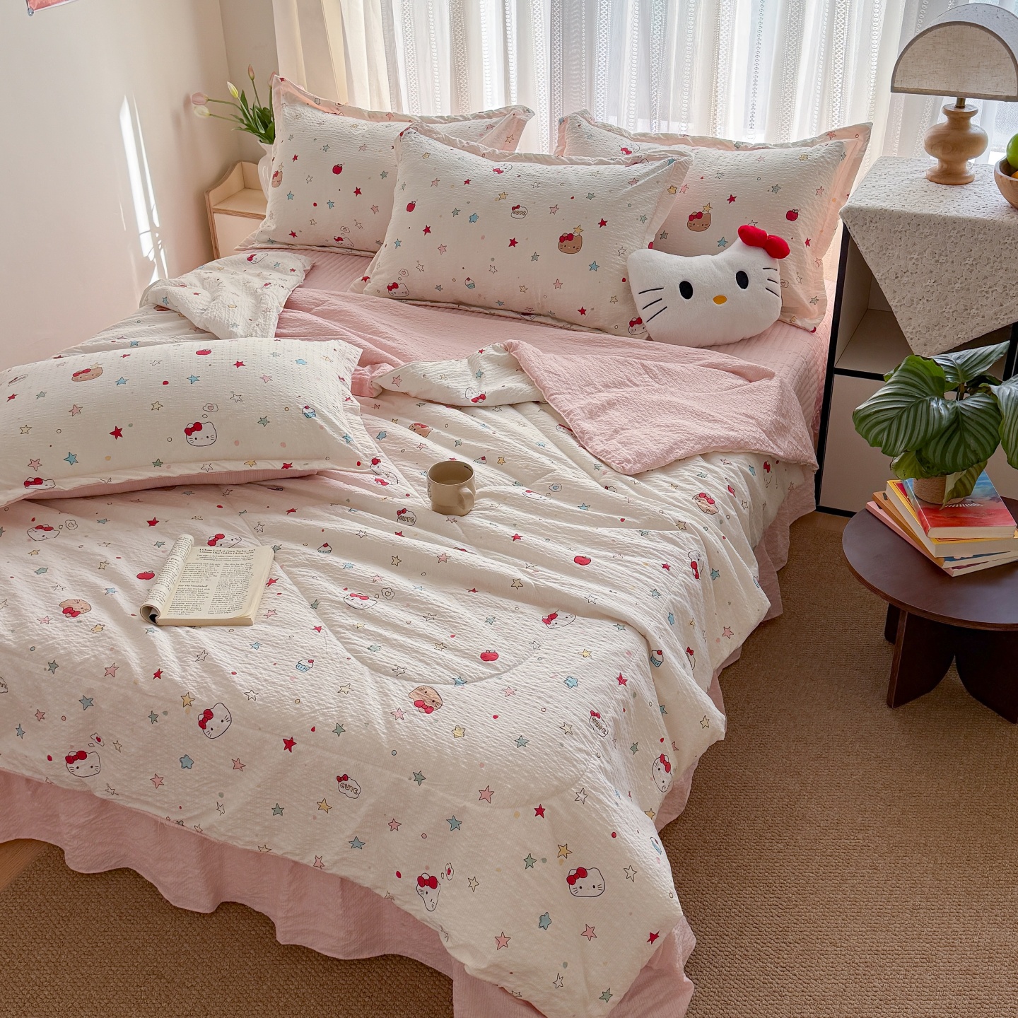 (总)禾沐 2026新款云感泡芙纱全棉蕾丝花边款夏被四件套,波点,花镜人偶,格格心,星芒凯蒂,花丛萌免,莓系花伐,片刻小狗,田园免,只闻花香,格纹熊,花软雾,猫咪集,木马小花团,暖橘枝,蔷薇花,若梦,星星人,胭脂,芋泥花束,悦悦小兔,组合图