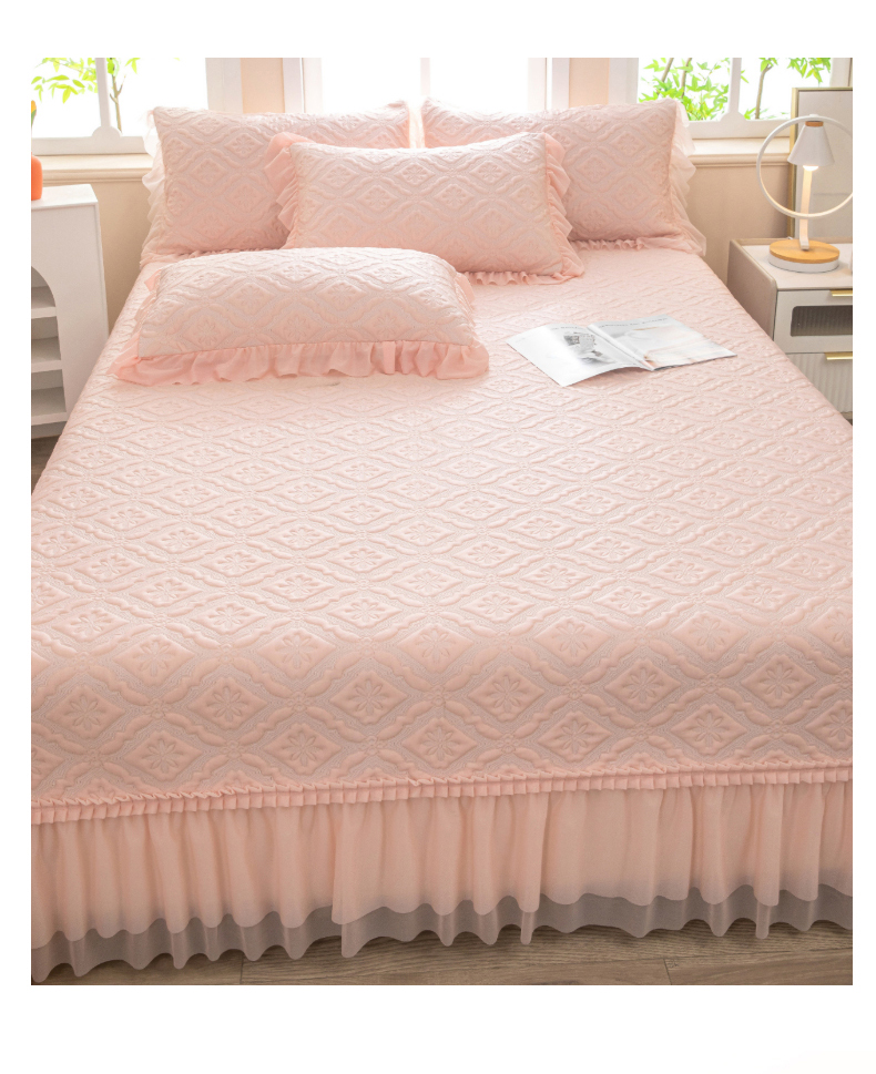 (总)木兰花 2024新款全棉印花夹棉床裙款三件套韩版花边被套四件套,安娜,暗香,红粉佳人,浪漫满屋