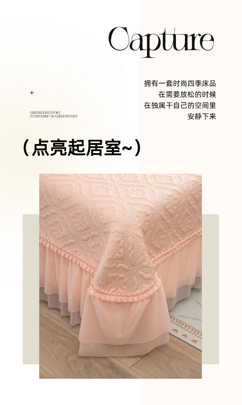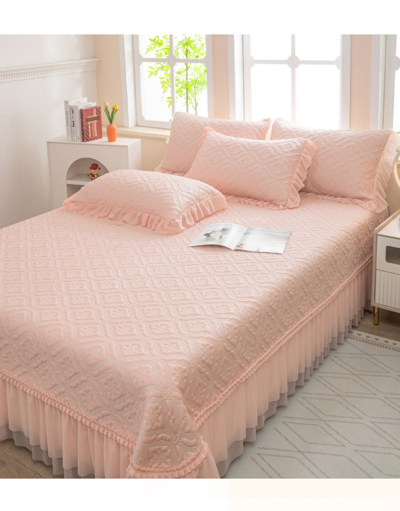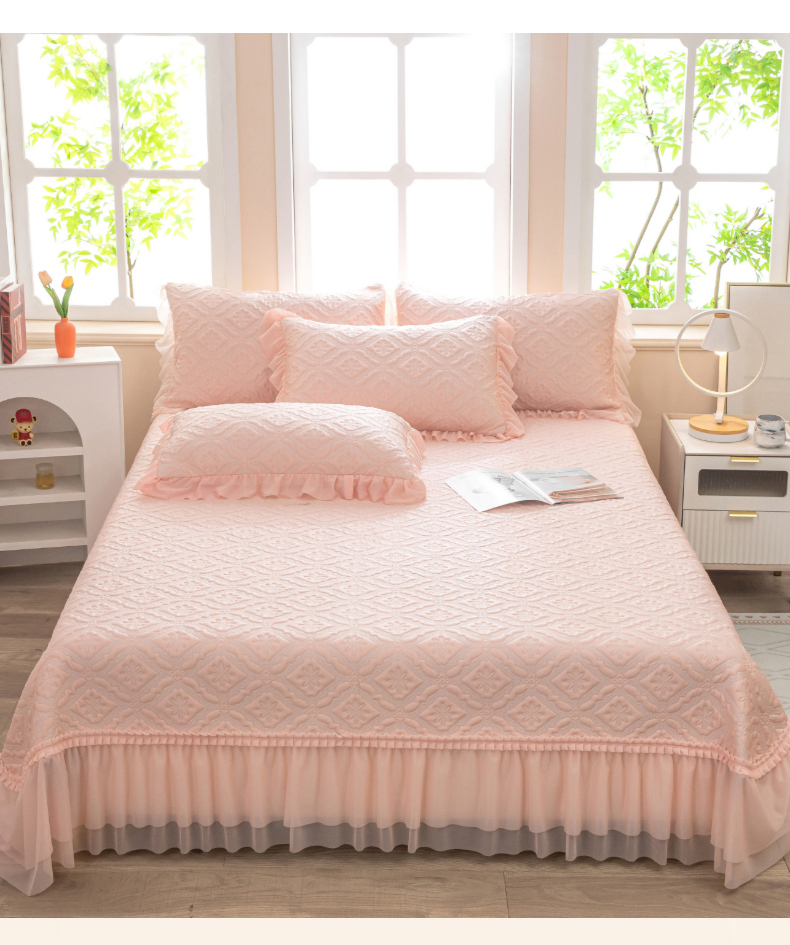 (总)木兰花 2025新款雕花全消光牛奶绒床盖款四件套-浪漫花语,浪漫花语-粉,浪漫花语-米色