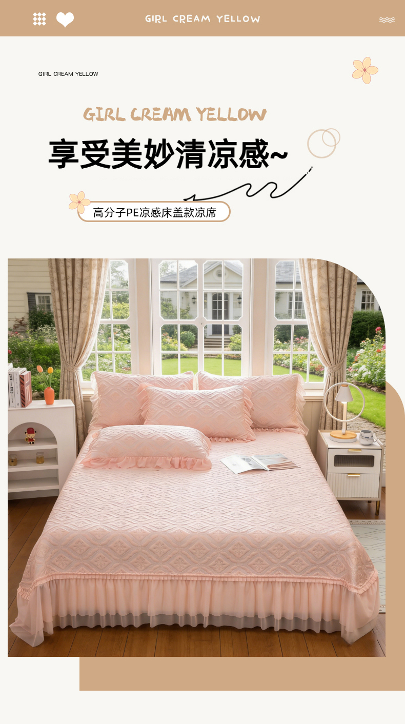 木兰花 2026新款凉豆豆款PE高分子复合凉感席床盖款凉席三件套-可配同色系夏被(控价228) 清凉夏日-粉色