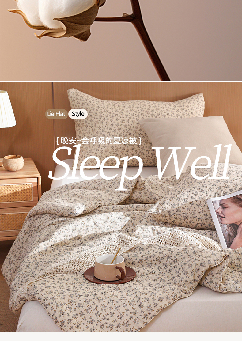 (总)尊妙被业 2026春夏新款莱赛尔天丝夏被蚕蛹蛋白夏被夏凉被空调被四件套-印花款,暗香绘-棕,花颜外-蓝,林屿间-粉,林语花夏-米,柳语素枝-绿,蔓行-绿,沐初-兰,叶间绒雪-兰,自然低语-绿