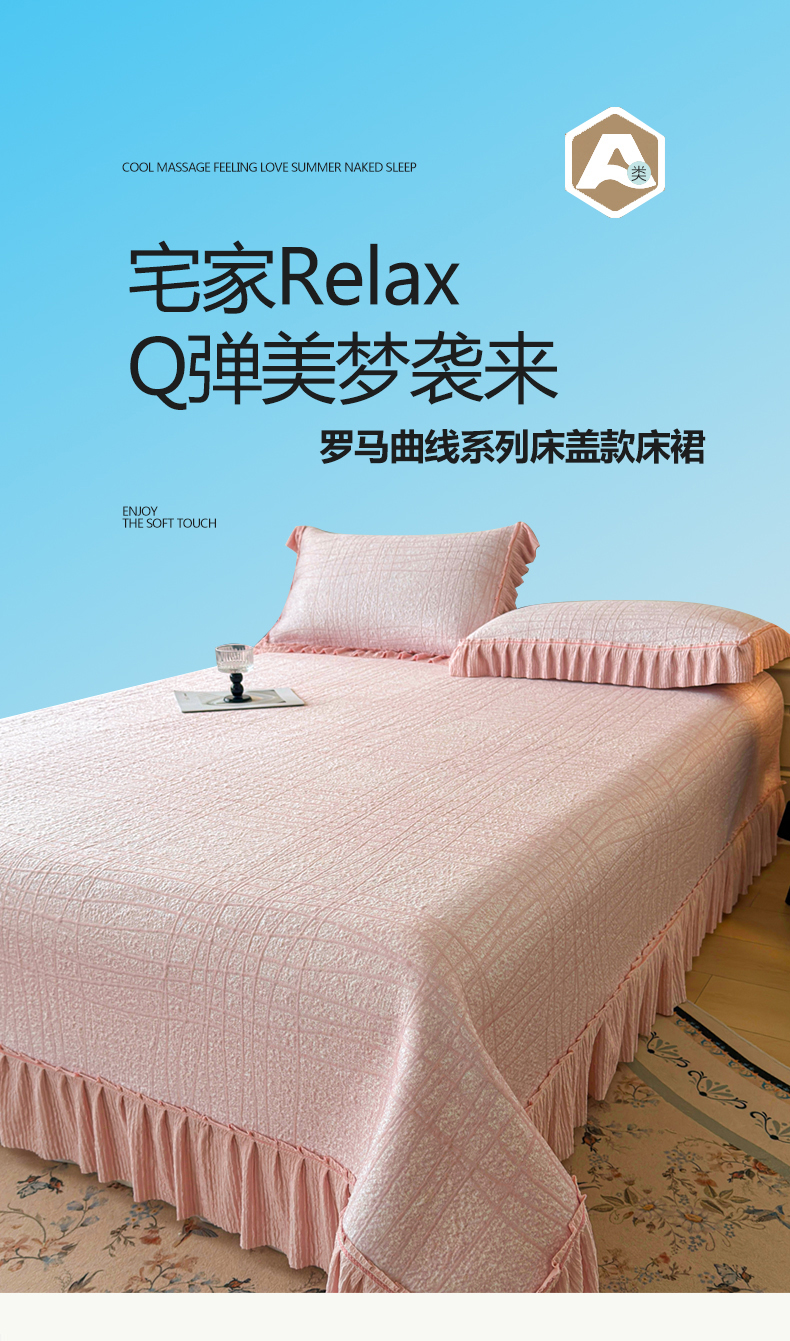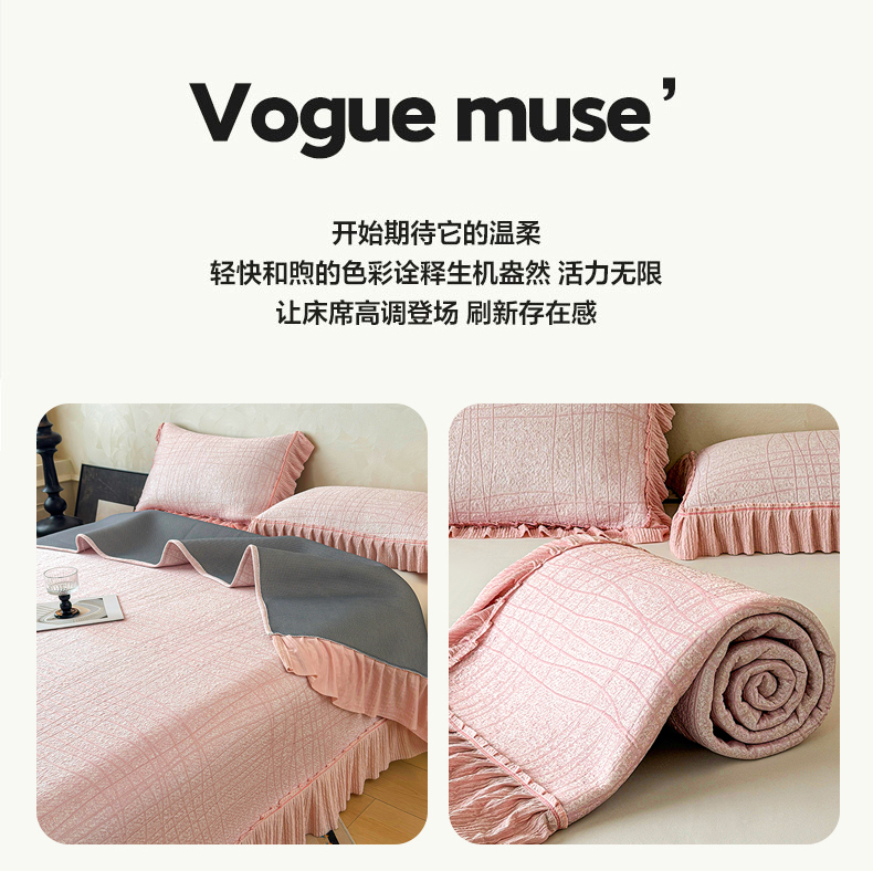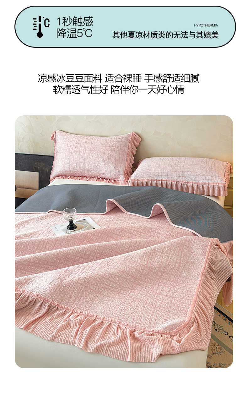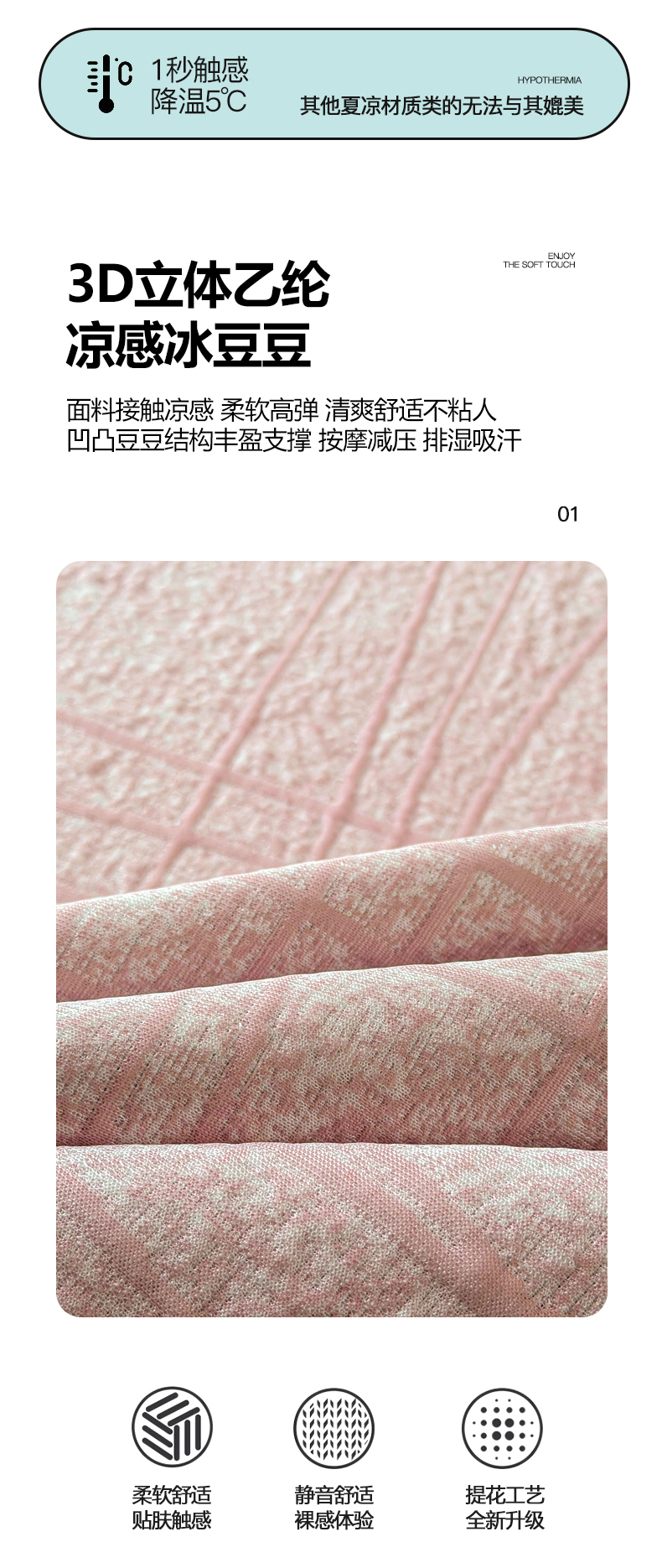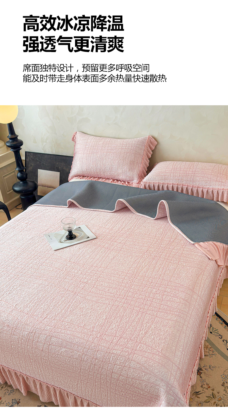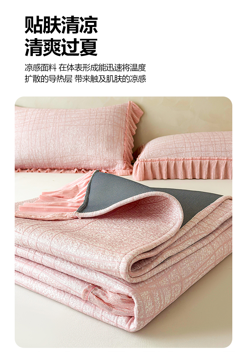 慕木家纺 2026新款满天星系列冰豆豆凉席(三明治复合)乙纶面料 罗马曲线-粉
