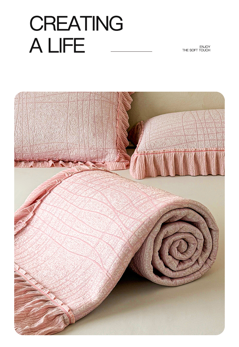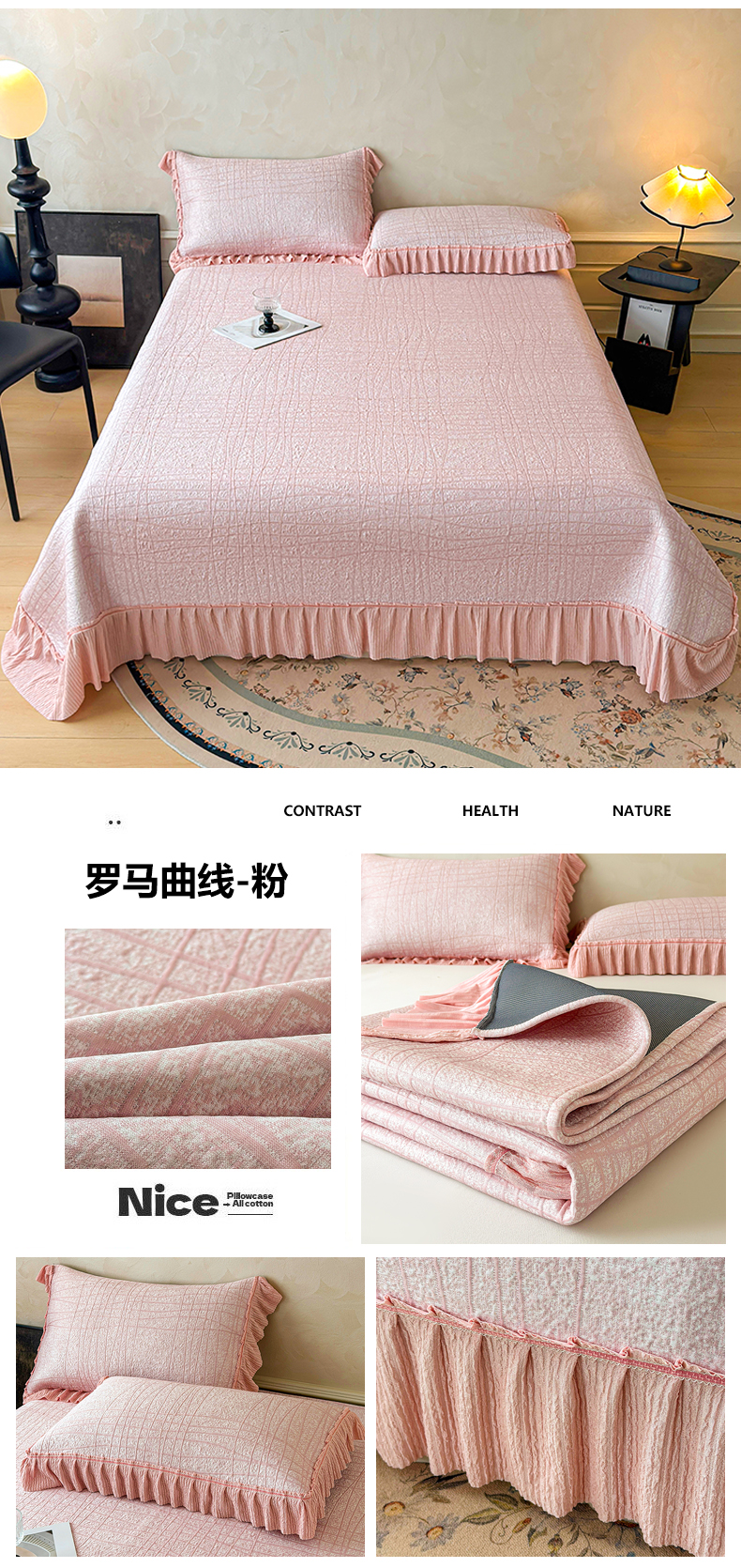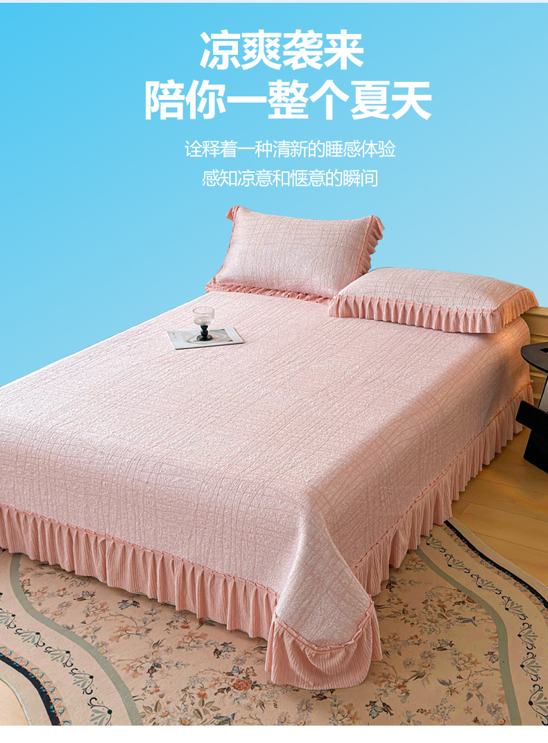 商品名称:慕木家纺 2026新款满天星系列冰豆豆凉席(三明治复合)乙纶面料 罗马曲线-粉