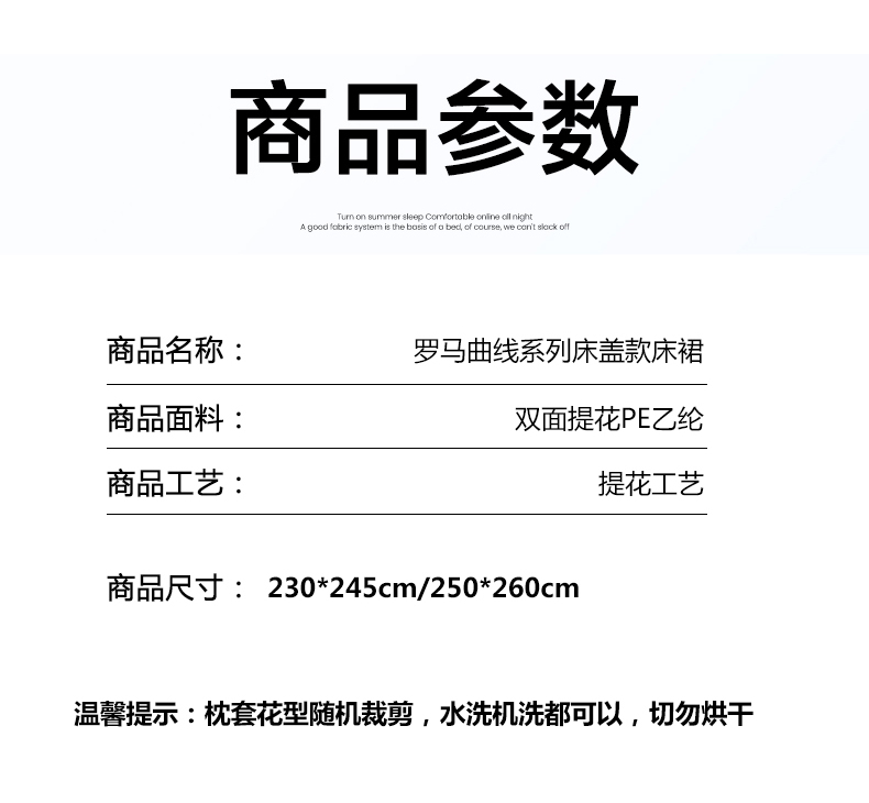 [{"sp_id":11,"sp_name":"\u989c\u8272","sp_format":2,"sp_list":[{"sp_value_id":1669,"sp_value_name":"\u7f57\u9a6c\u66f2\u7ebf-\u7c89","sp_value_image":{"id":999,"path":"https:\/\/img3.91jf.com\/ghelp\/2026\/20260406\/20260406105751_854466.jpeg"},"sp_value_video":{"id":0,"img":"","path":"","time":0,"download_num":0,"play_num":0},"price":"30.00","storage":2500,"weight":"0.500","is_check_weight":0,"plus_price":"","sp_sort":0}]},{"sp_id":29,"sp_name":"\u5c3a\u5bf8","sp_format":1,"sp_list":[{"sp_value_id":353,"sp_value_name":"48x74cm\u6795\u5957\u4e00\u5bf9","sp_value_image":{"id":0,"path":""},"sp_value_video":{"id":0,"img":"","path":"","time":0,"download_num":0,"play_num":0},"price":"30.00","storage":500,"weight":"0.500","is_check_weight":0,"plus_price":"","sp_sort":5},{"sp_value_id":354,"sp_value_name":"230x245cm\u5355\u5e8a\u88d9","sp_value_image":{"id":0,"path":""},"sp_value_video":{"id":0,"img":"","path":"","time":0,"download_num":0,"play_num":0},"price":"112.00","storage":500,"weight":"2.800","is_check_weight":0,"plus_price":"","sp_sort":6},{"sp_value_id":355,"sp_value_name":"250x260cm\u5355\u5e8a\u88d9","sp_value_image":{"id":0,"path":""},"sp_value_video":{"id":0,"img":"","path":"","time":0,"download_num":0,"play_num":0},"price":"132.00","storage":500,"weight":"3.500","is_check_weight":0,"plus_price":"","sp_sort":7},{"sp_value_id":356,"sp_value_name":"230x245cm\u5355\u5e8a\u88d9+\u6795\u5957\u4e00\u5bf9","sp_value_image":{"id":0,"path":""},"sp_value_video":{"id":0,"img":"","path":"","time":0,"download_num":0,"play_num":0},"price":"140.00","storage":500,"weight":"3.500","is_check_weight":0,"plus_price":"","sp_sort":8},{"sp_value_id":357,"sp_value_name":"250x260cm\u5355\u5e8a\u88d9+\u6795\u5957\u4e00\u5bf9","sp_value_image":{"id":0,"path":""},"sp_value_video":{"id":0,"img":"","path":"","time":0,"download_num":0,"play_num":0},"price":"160.00","storage":500,"weight":"4.200","is_check_weight":0,"plus_price":"","sp_sort":9}]}]