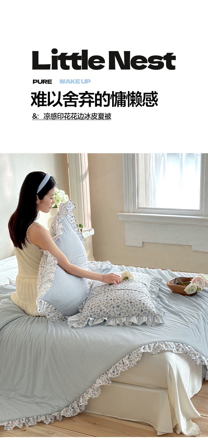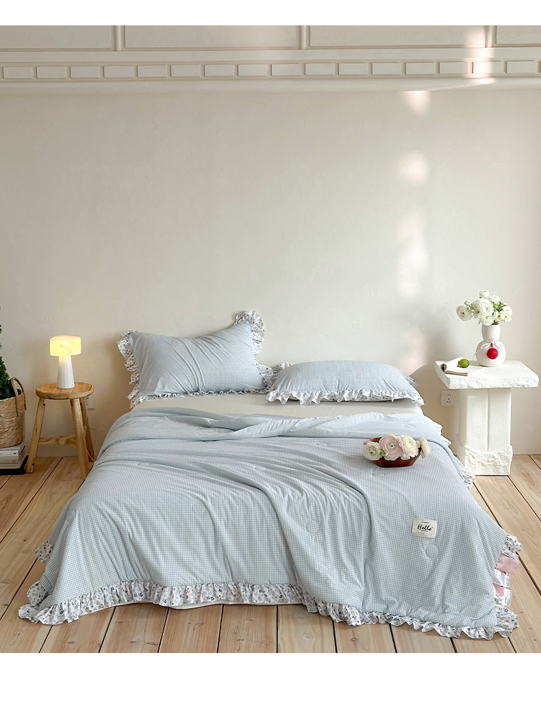 商品名称:RYB红黄兰 2026新款ins风夏被A类冰皮凉感夏凉被花边空调被 蓝小格