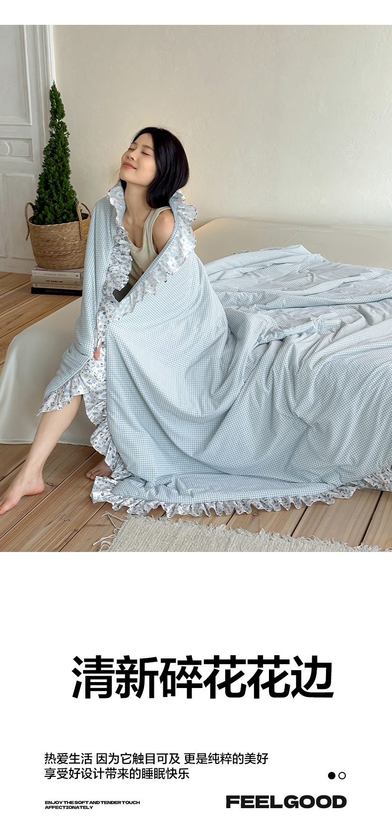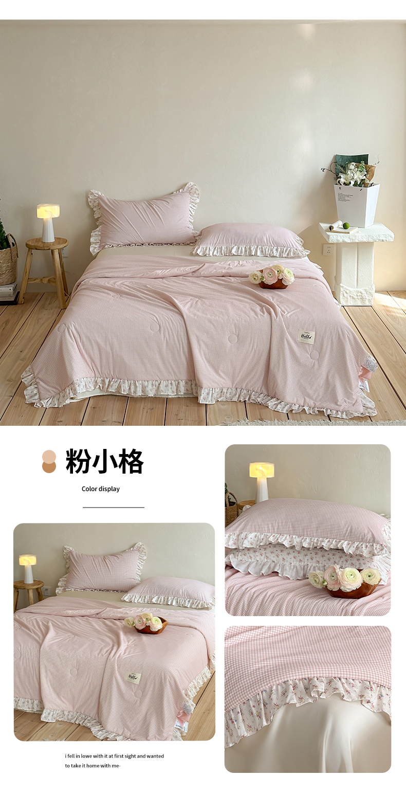 (总)RYB红黄兰 2026新款ins风夏被A类冰皮凉感夏凉被花边空调被,蓝小格,粉小格,绿小格,组合图