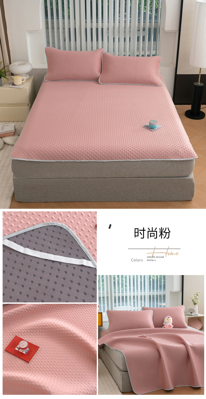 (总)默忆 2026新款3D轻奢风A类直播网红热款凉感丝冰豆豆三明治复合床单款凉席两件套三件套,贵族灰,果绿,孔雀蓝,墨绿,时尚粉,天空蓝,香芋紫,熏衣紫