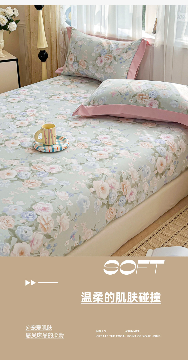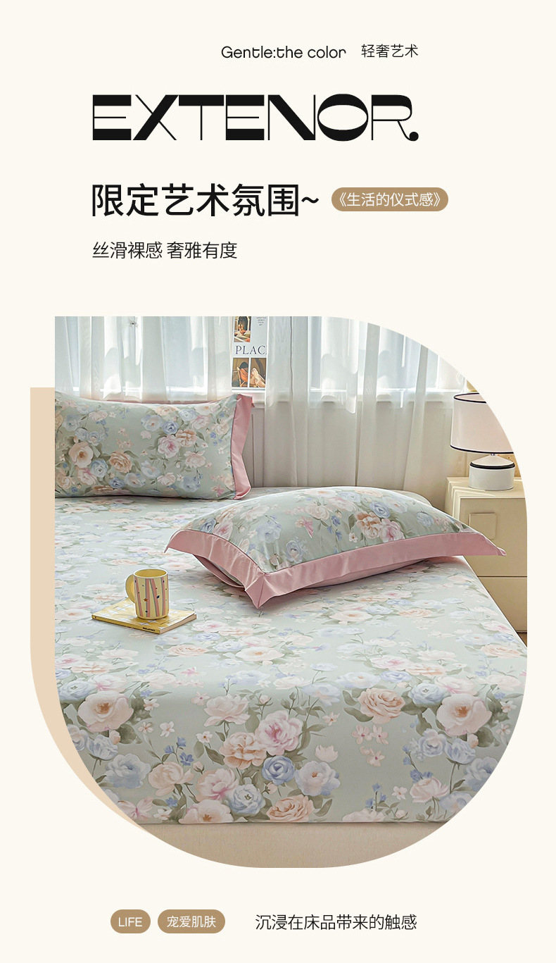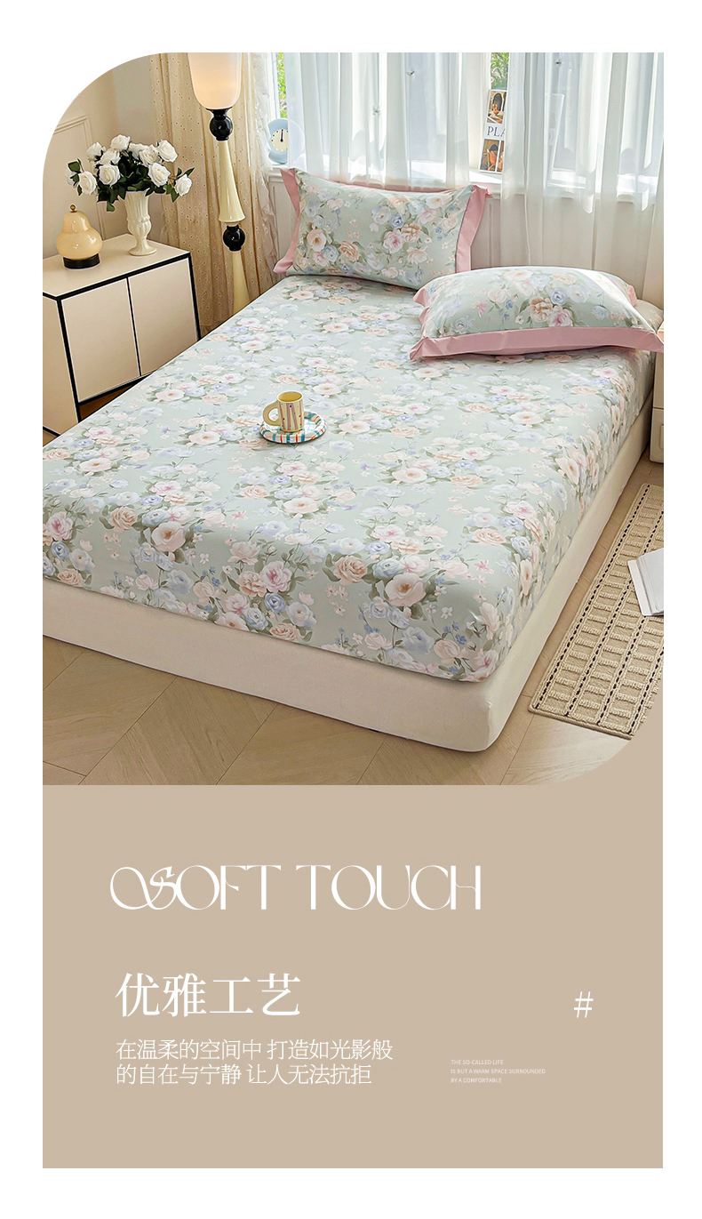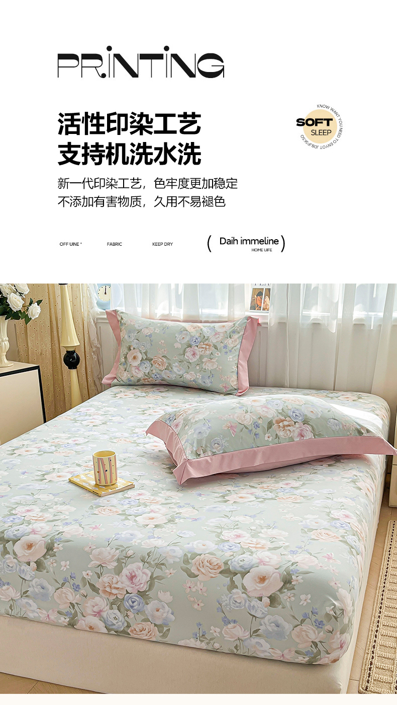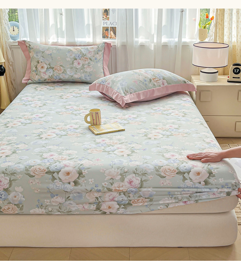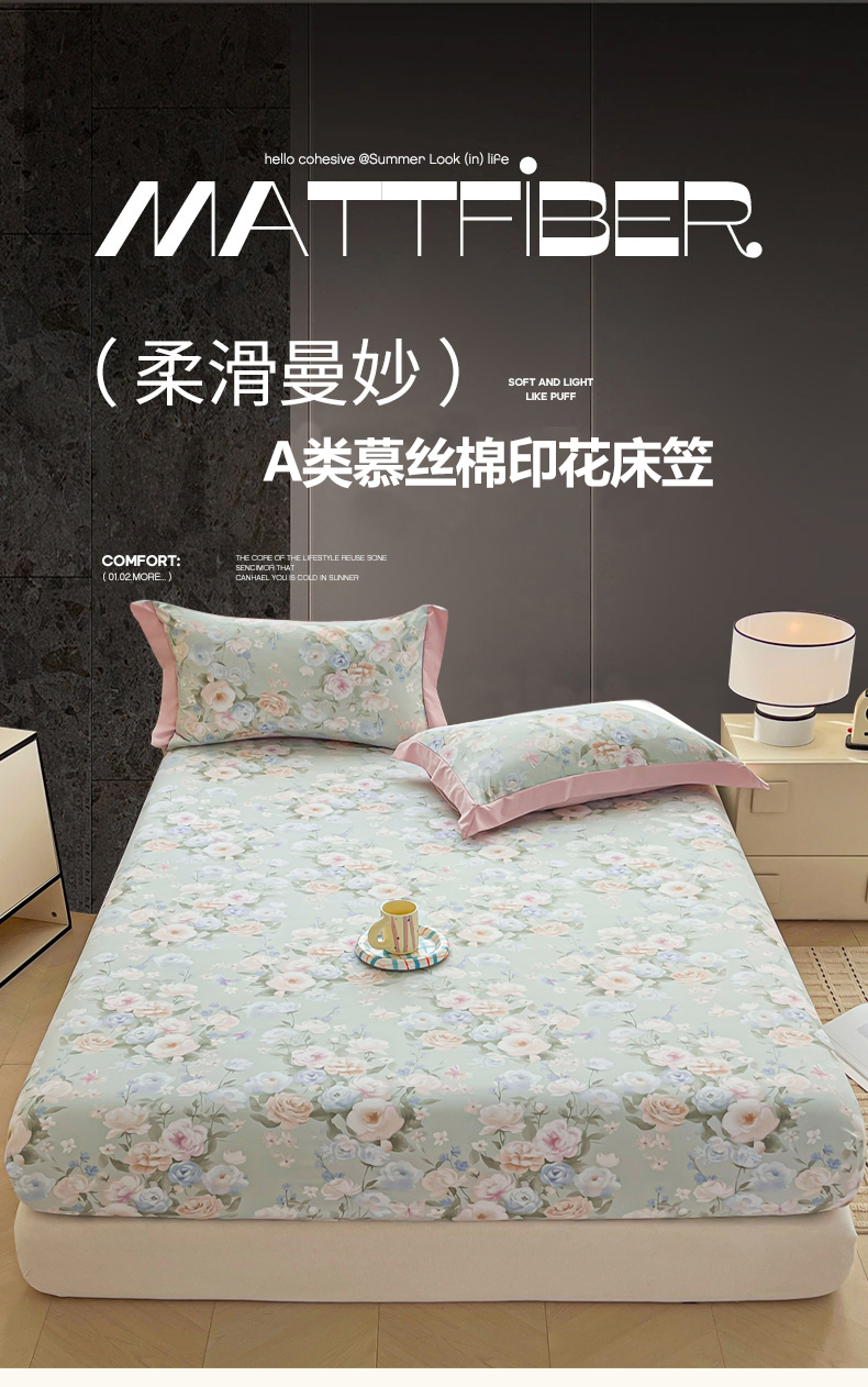 • 91家纺网 家纺一手货源 找家纺 慕木家纺 2026新款A类纯色印花慕丝棉床笠系列(抽空压缩可供跨境)(提供买家秀) 青研