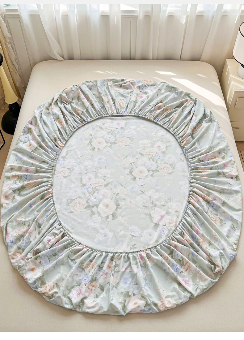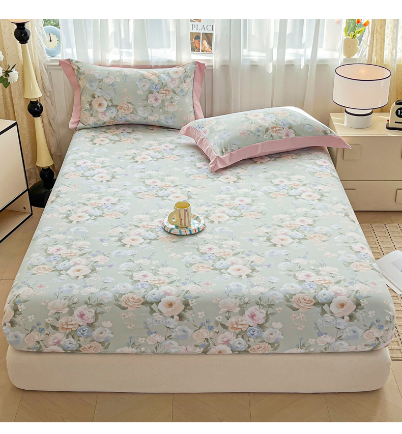 慕木家纺 2026新款A类纯色印花慕丝棉床笠系列(抽空压缩可供跨境)(提供买家秀) 青研