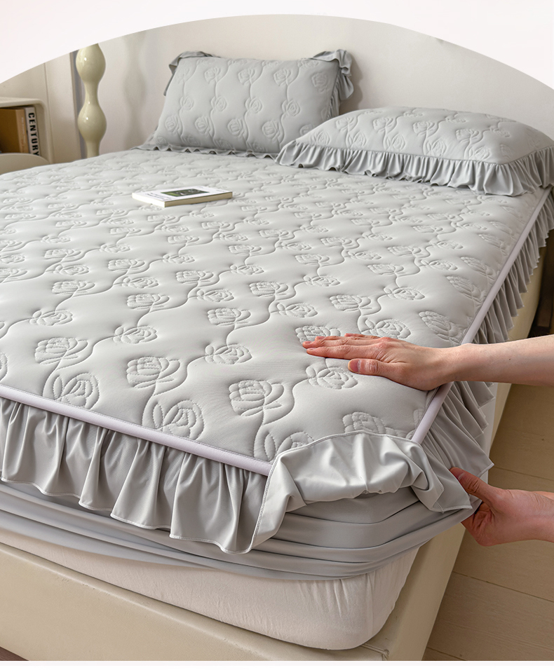 (总)雯豆家纺 2026新款A类凉感丝花边床裙款凉席席子凉席,凉感丝床裙-碧空蓝,凉感丝床裙-春辰绿,凉感丝床裙-淡雅灰,凉感丝床裙-轻奢灰,凉感丝床裙-森林绿,凉感丝床裙-胭脂粉