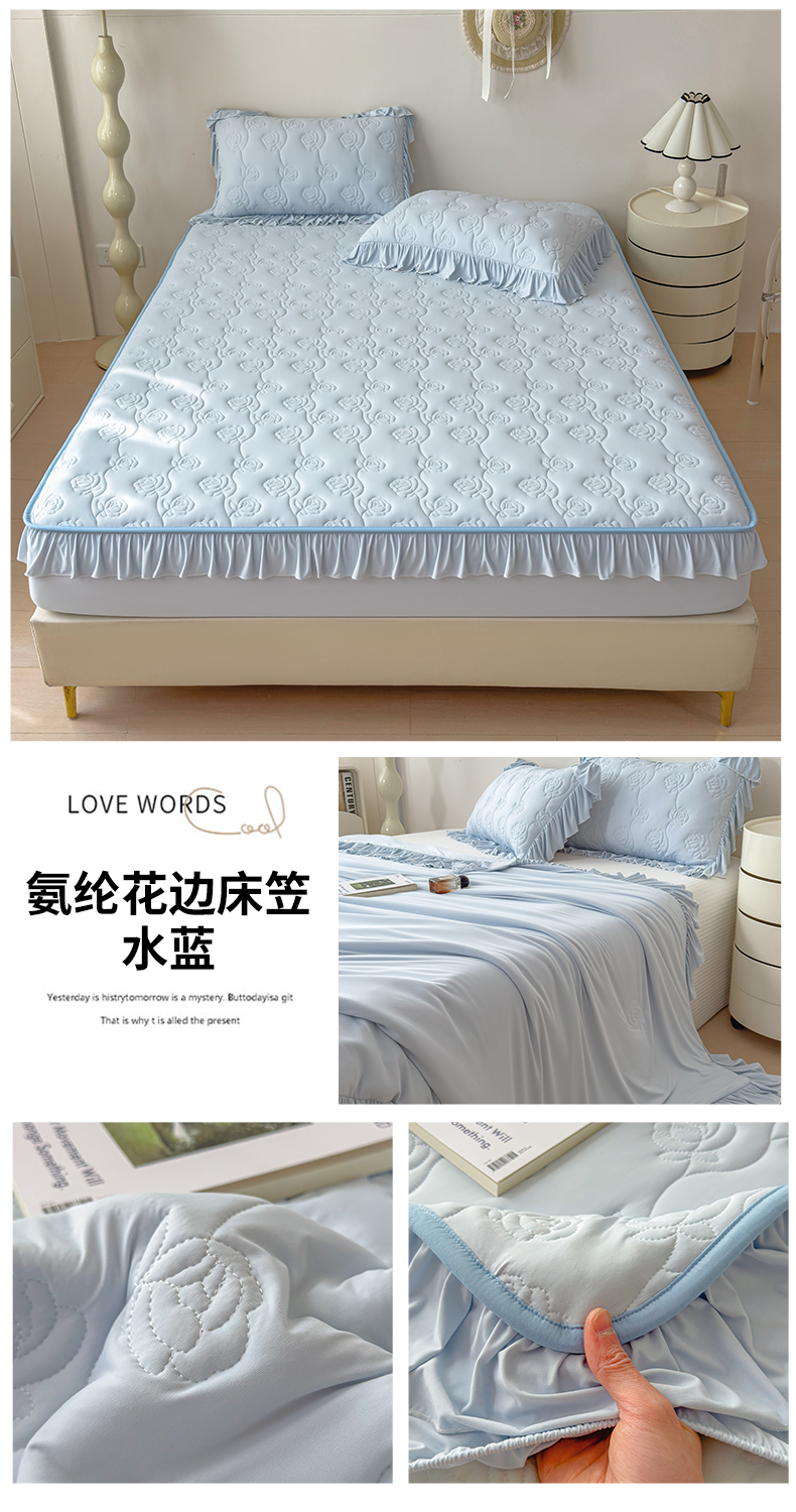 (总)雯豆家纺 【10A抗菌】2026新款氨纶凉感丝花边枕套单只一对装夏季冰丝枕芯保护套,氨纶花边床笠-水蓝,氨纶花边床笠-粉,氨纶花边床笠-奶黄,氨纶花边床笠-浅灰,氨纶花边床笠-香芋紫,组合