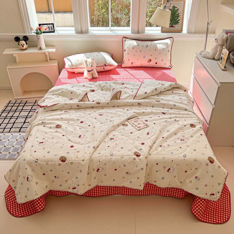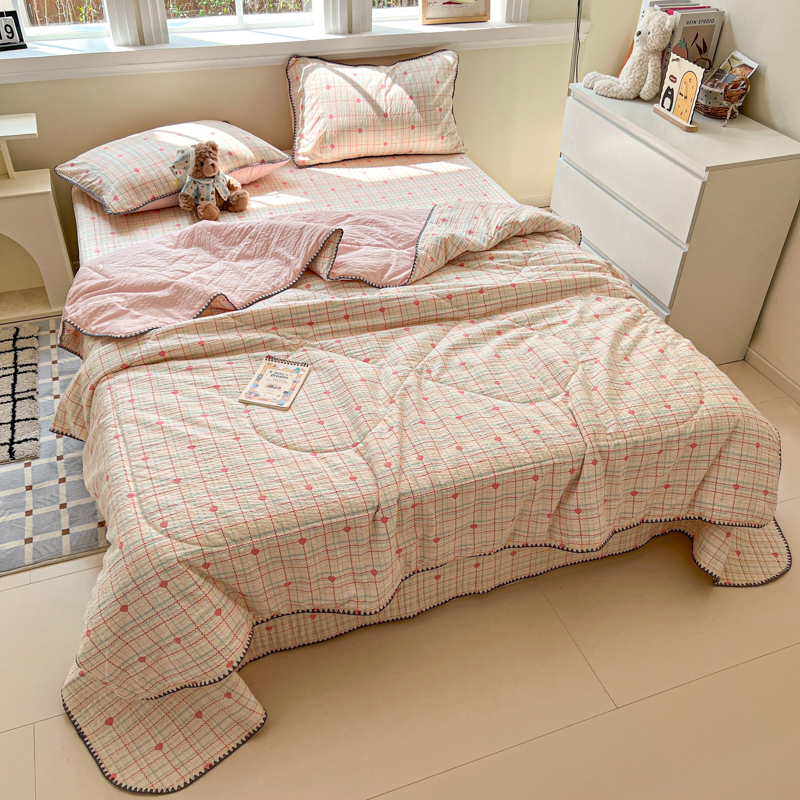 (总)禾沐 2026新款泡芙纱夏被四件套简单款,波点,粉黛,粉色小心心,格格心,格系萌宠,花间娃娃,花镜人偶黄,花序,灰猫头,旧街星星,咖爱心,咖豹纹,兰爱心,浅川纹,森林描绘,田园兔,只闻花香,紫陌,KT猫,古典格,浅夏花信