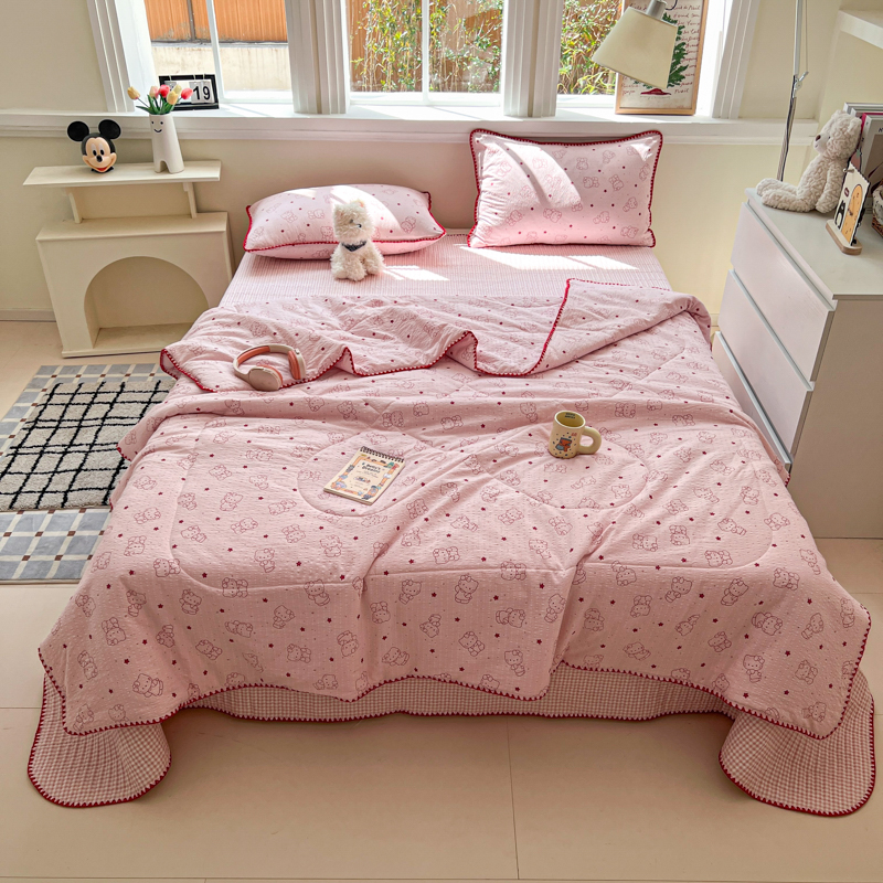 禾沐 2026新款云感泡芙棉泡芙纱床盖夏被四件套 波点,波点