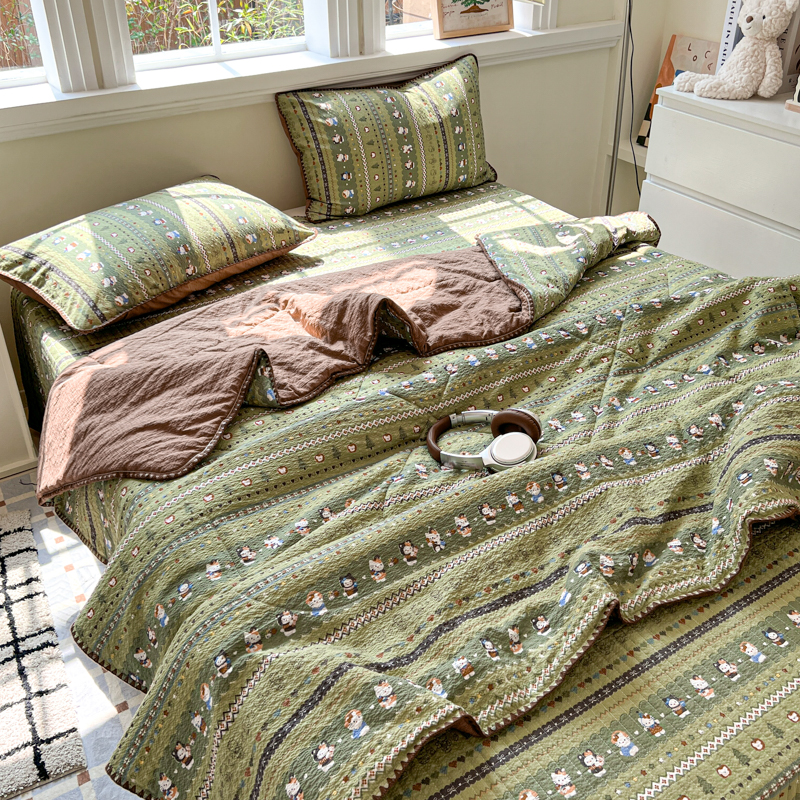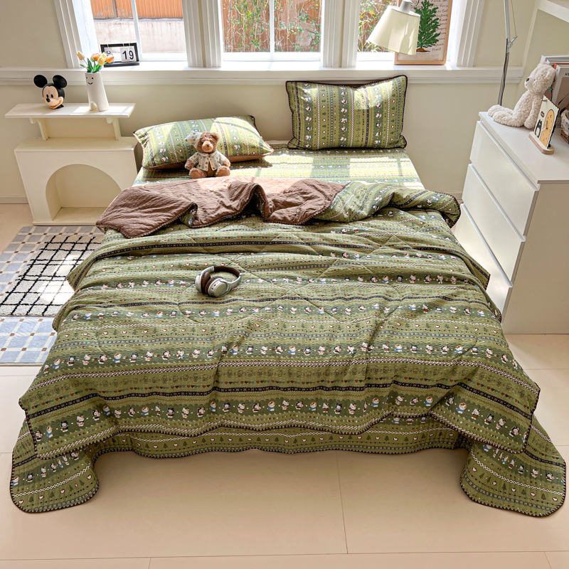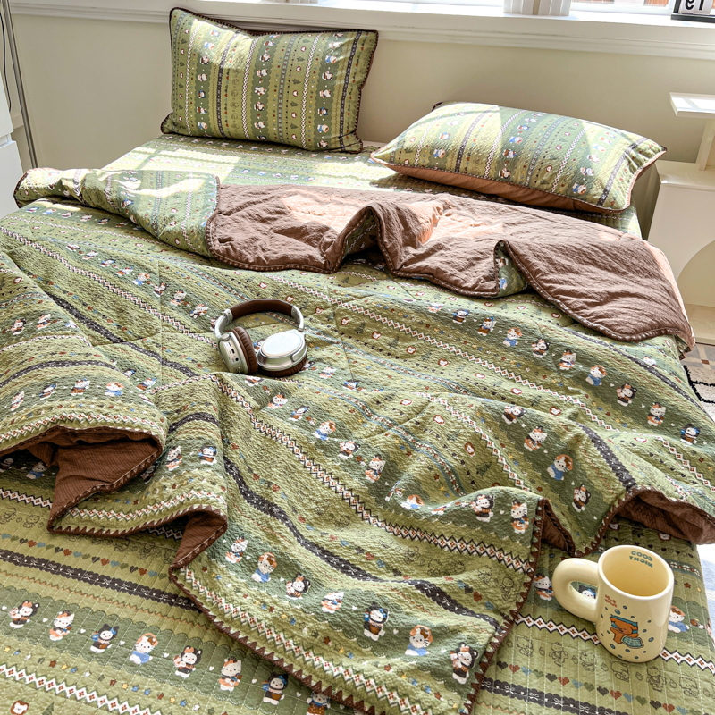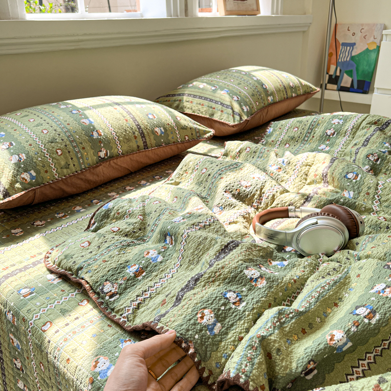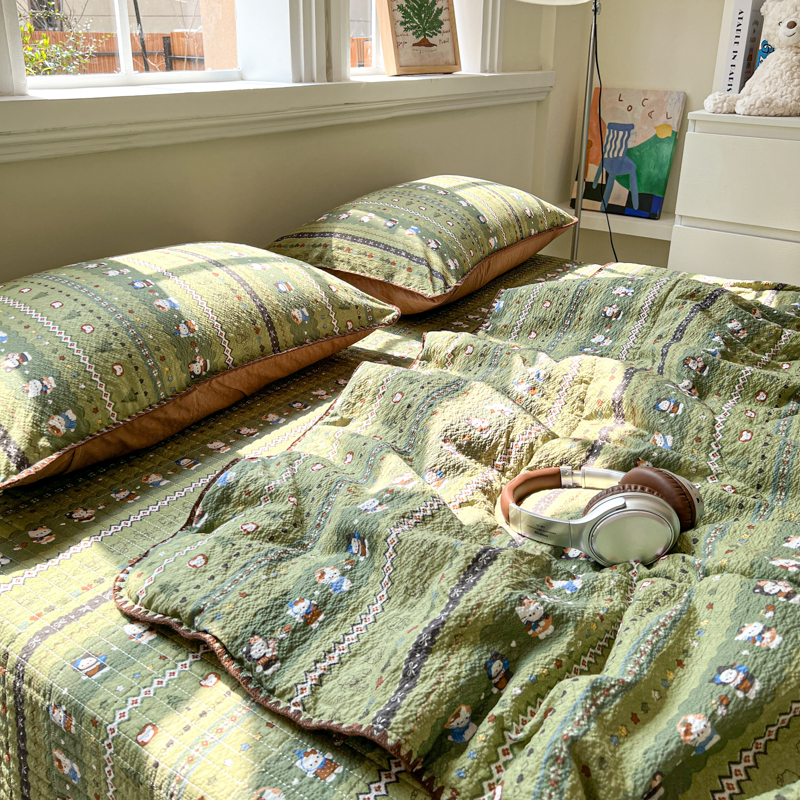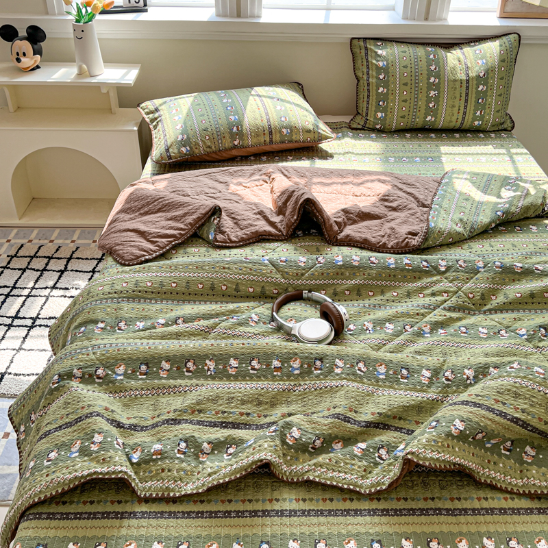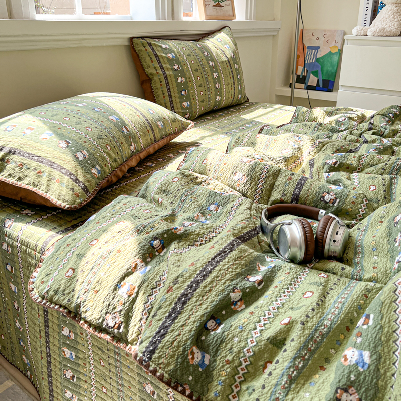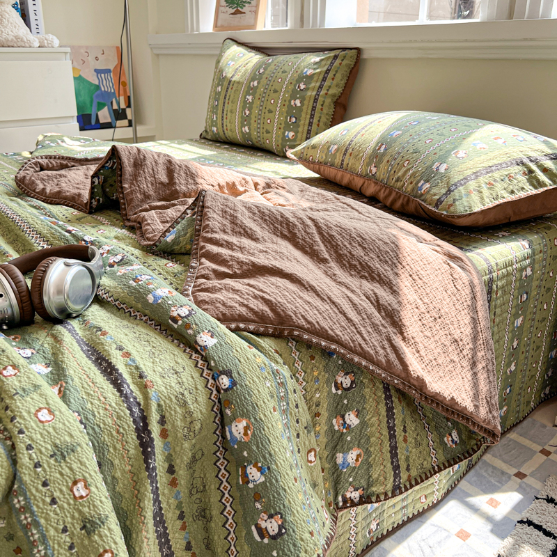 禾沐 2026新款泡芙纱三角针床盖夏被四件套 森林描绘