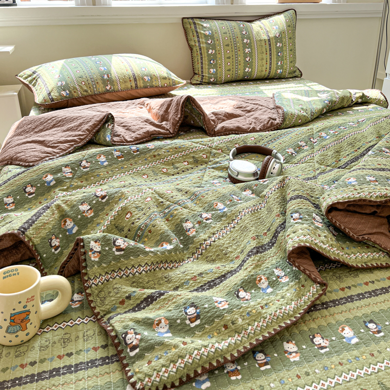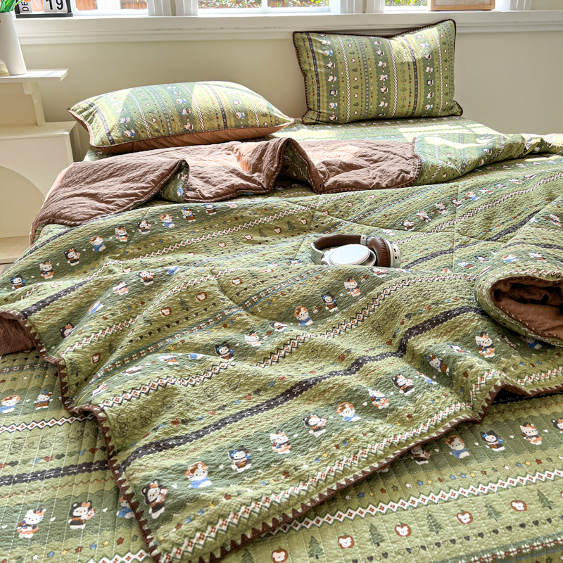 商品名称:禾沐 2026新款泡芙纱三角针床盖夏被四件套 森林描绘