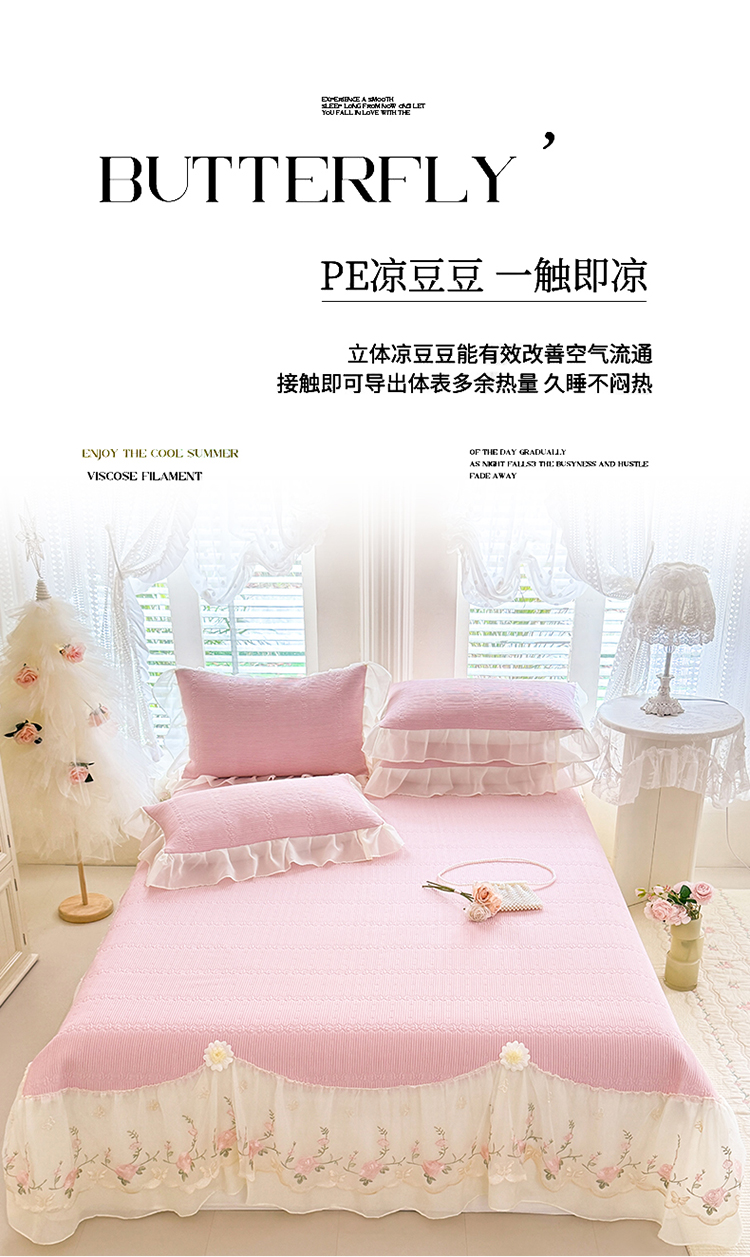 (总)苏米娜家纺SUMINA 2026新款PE高分子弯边工艺床裙款凉席三件套-可心,可心-冰川兰,可心-粉黛,可心-奶油白,可心-清新绿