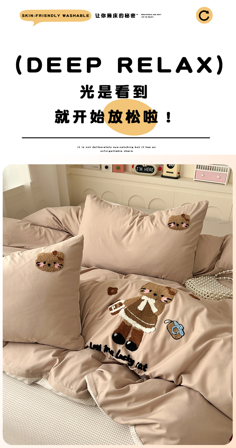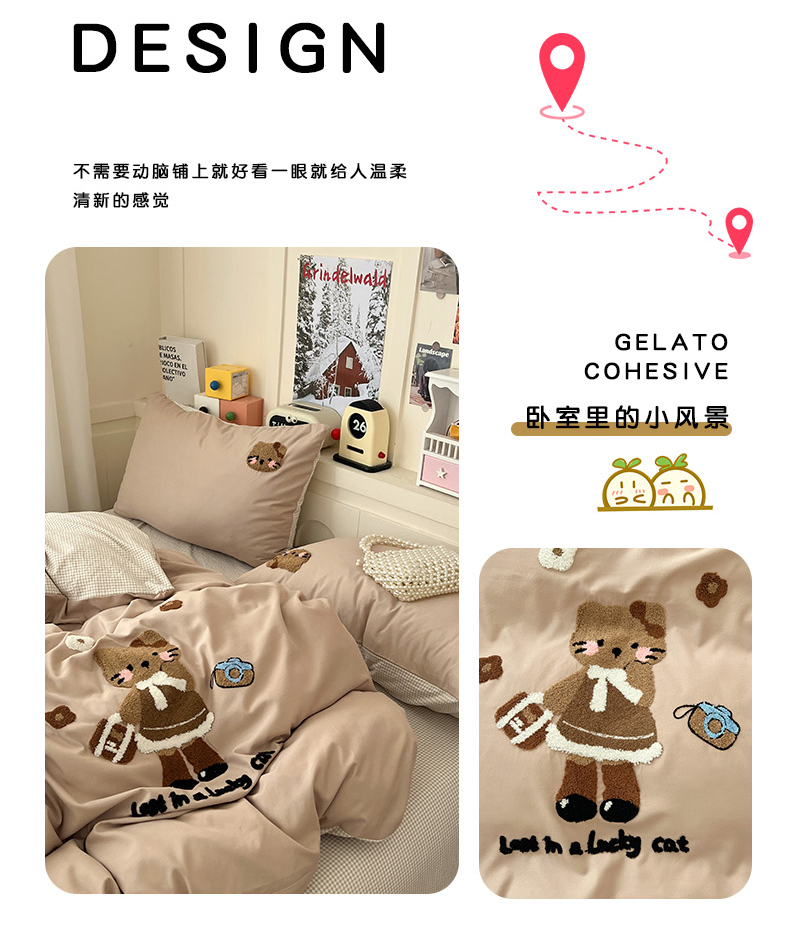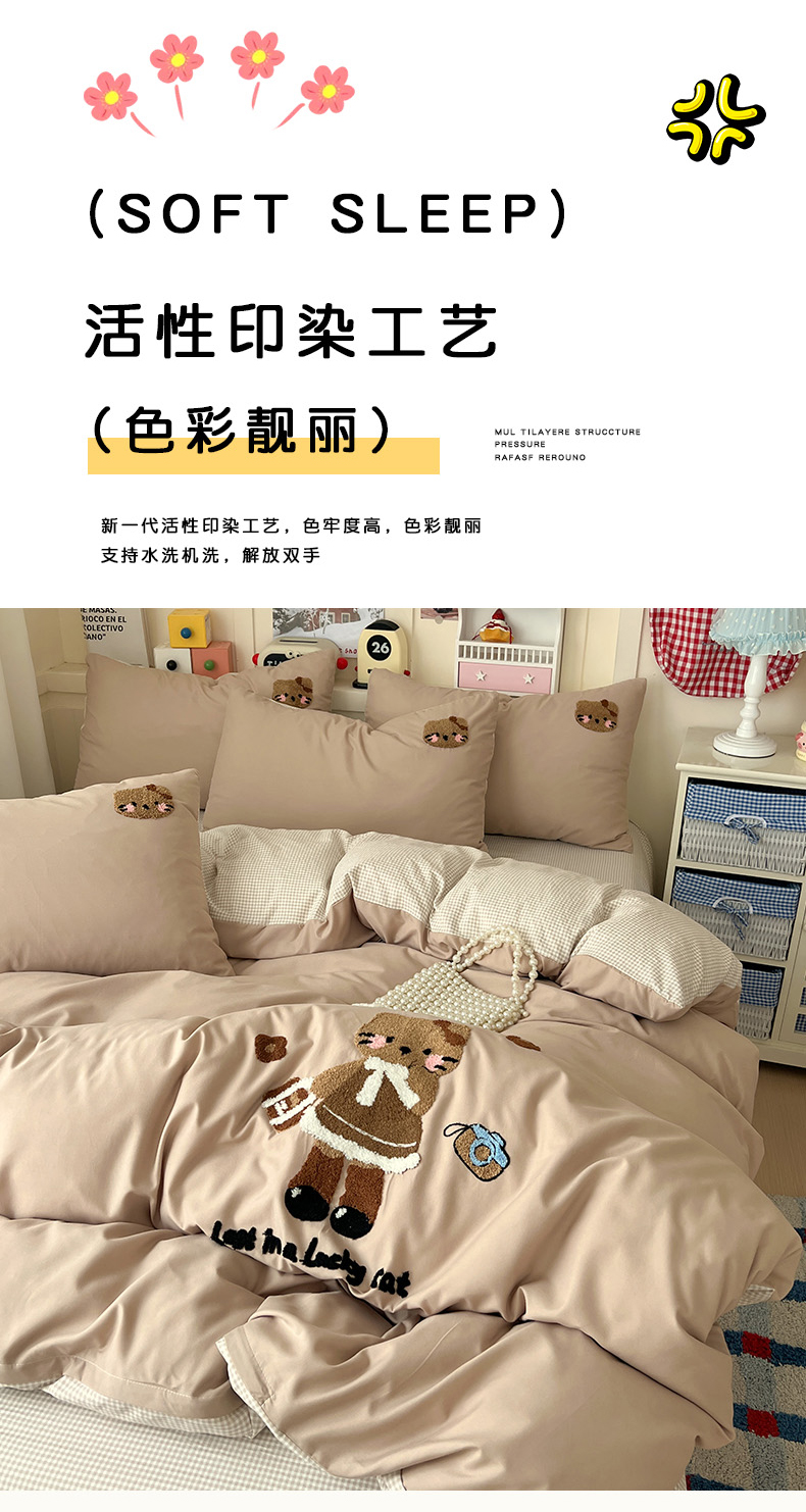 当前位置: 91家纺网 > 商品网购 > 床品套件 > 四件套 > 化纤普通四件套 > 鑫佳居 2026新款古法水洗云感棉毛巾绣四件套 奶茶KT猫