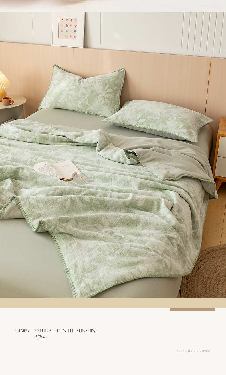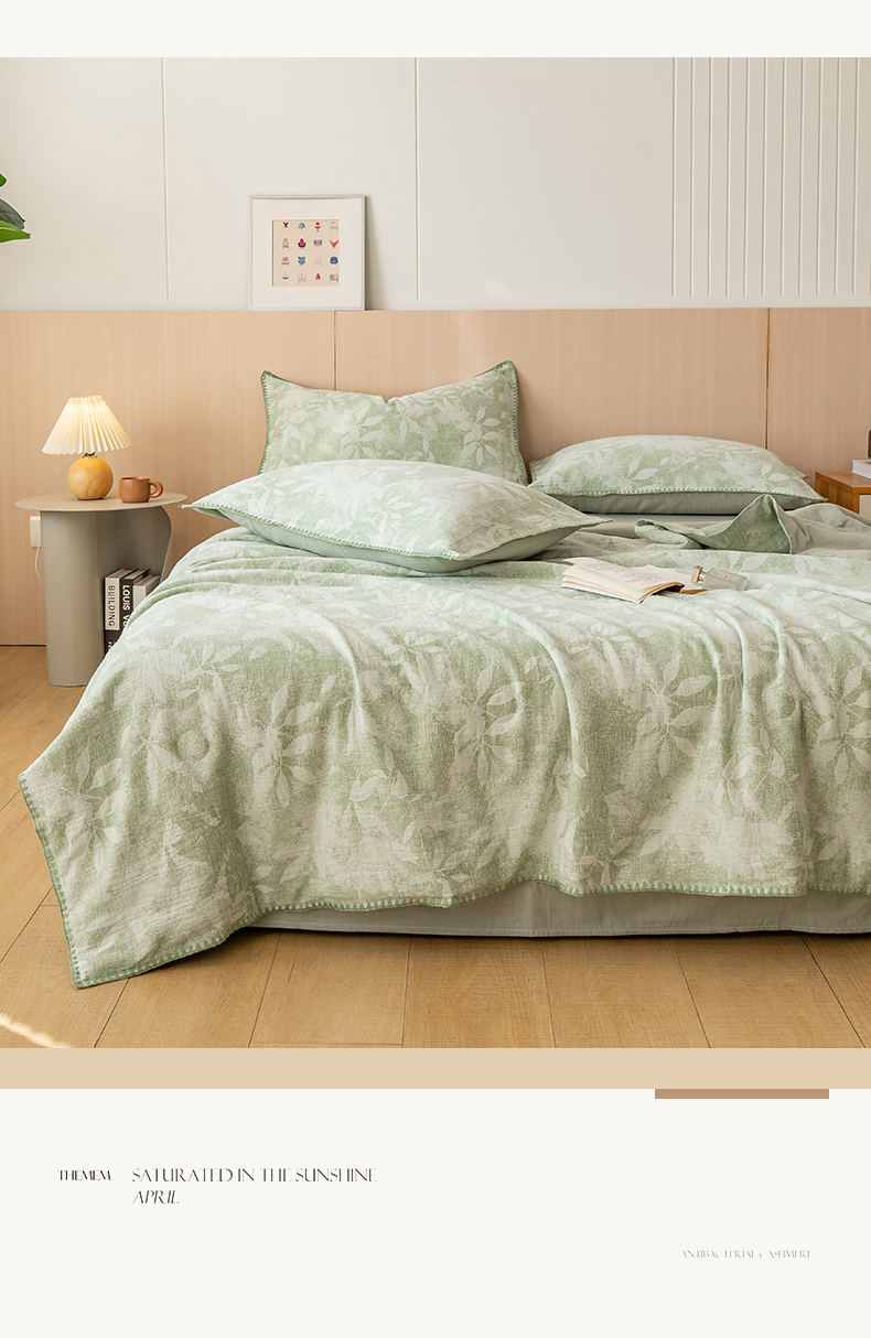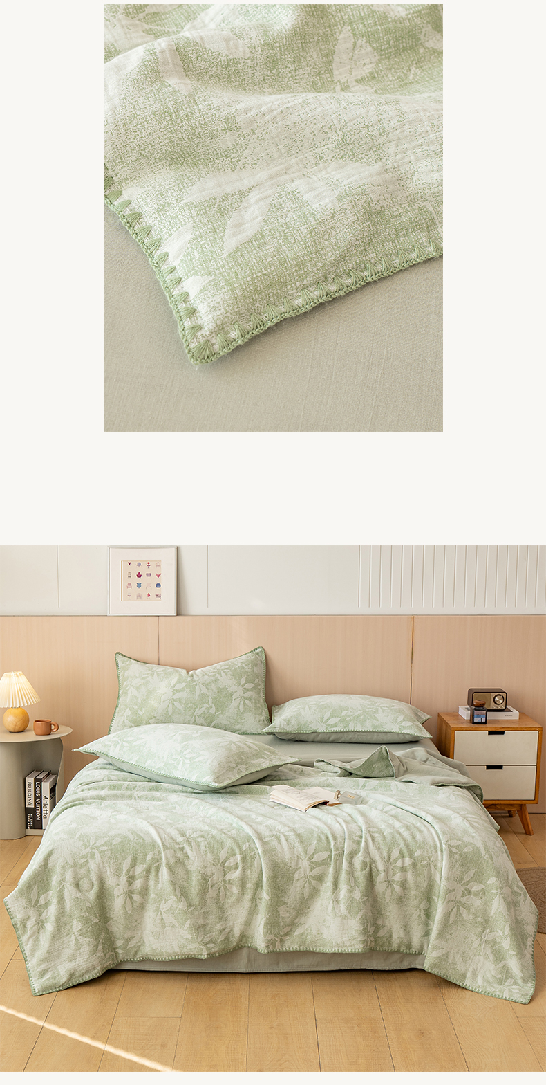 当前位置: 91家纺网 > 商品网购 > 被子 > 夏被 > 鸣升家纺 2026春夏新款全棉双层纱大提花夏被夏凉被空调被 香奈花园-绿