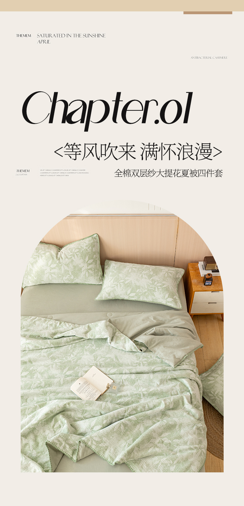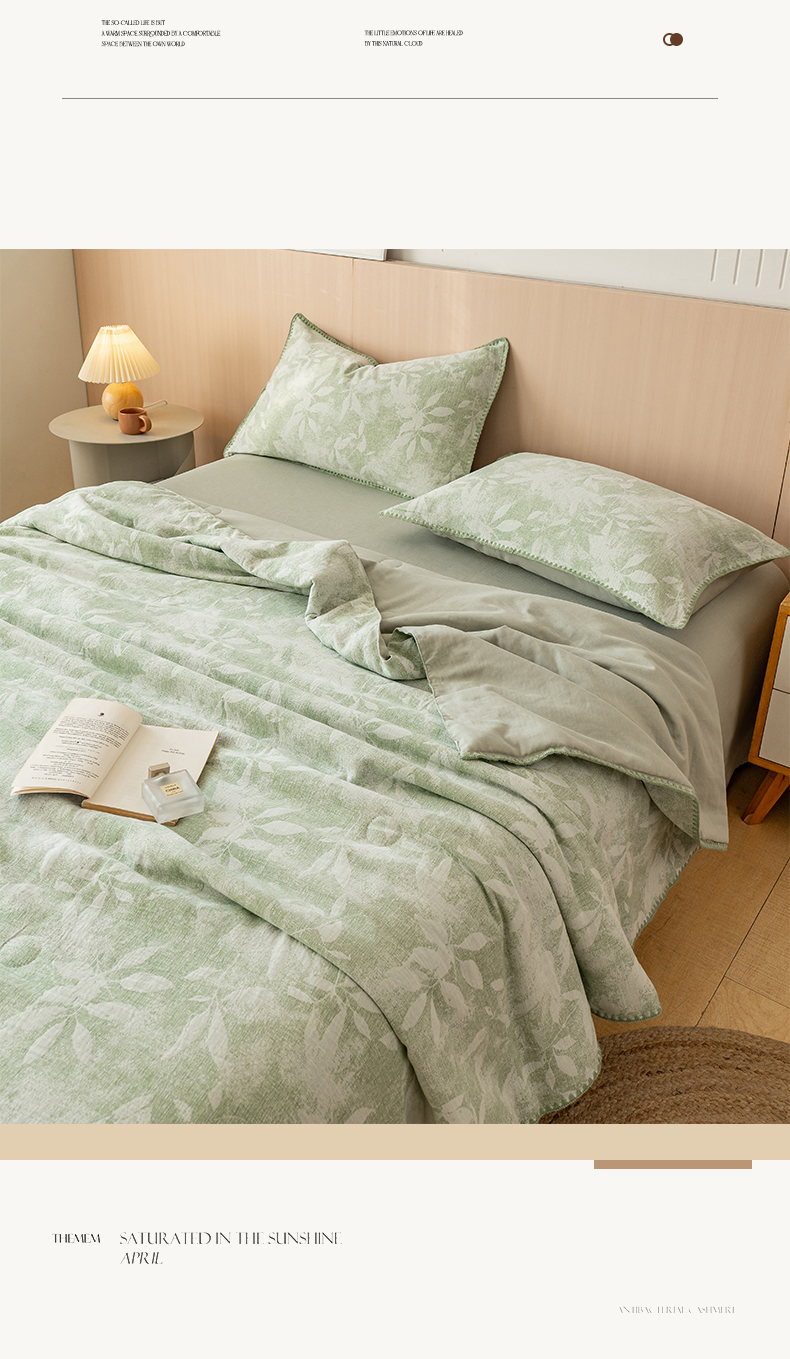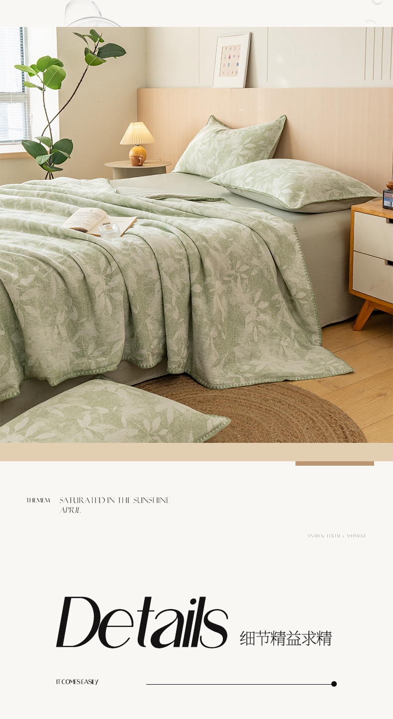 当前位置: 91家纺网 > 商品网购 > 被子 > 夏被 > 鸣升家纺 2026春夏新款全棉双层纱大提花夏被夏凉被空调被 香奈花园-绿
