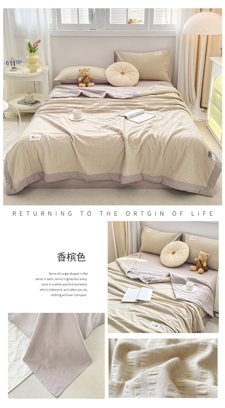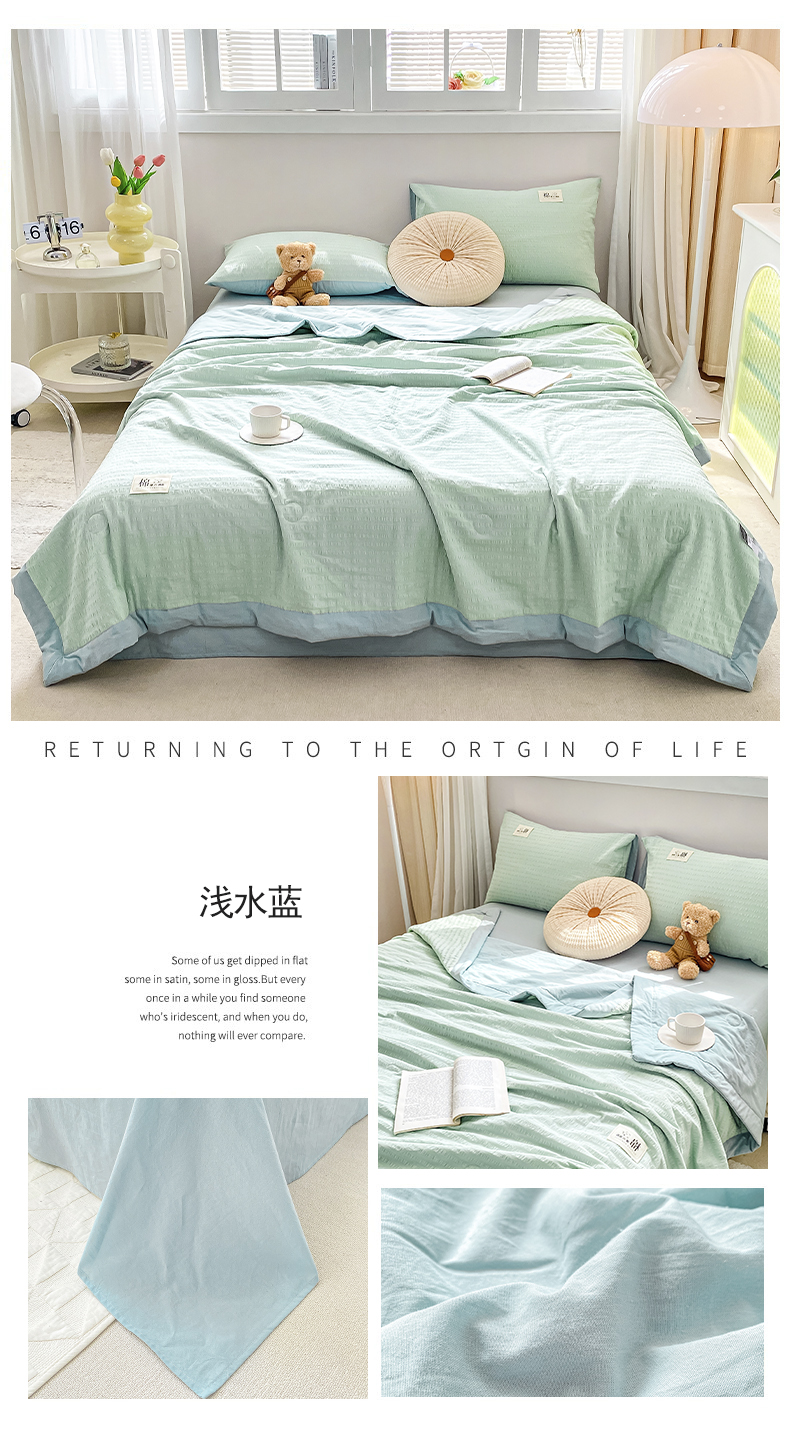 (总)2025新款全棉双层皱皱沙纯色花边30%大豆夏凉被纯棉夏被被子被芯,安娜-水绿,安娜-豆沙,安娜-浅灰,安娜-雾蓝,安娜-奶咖