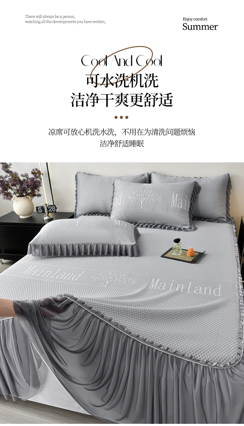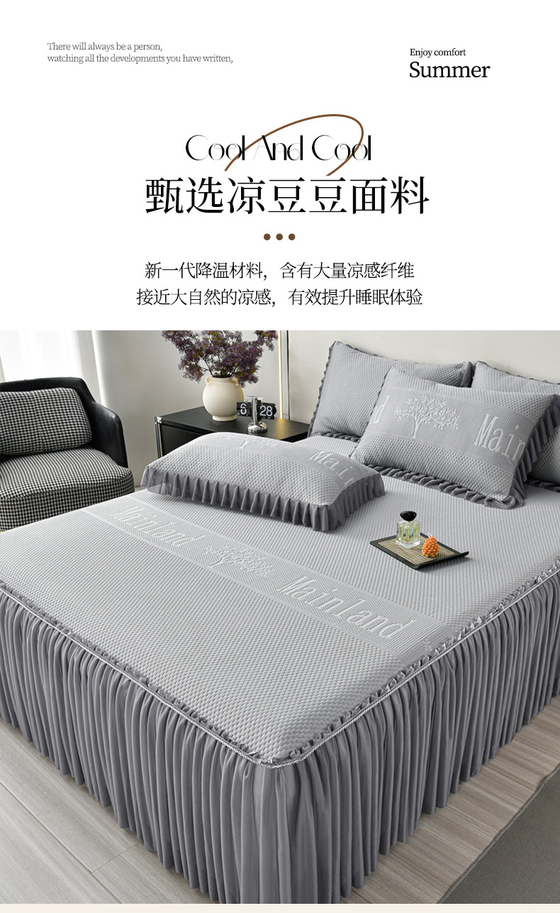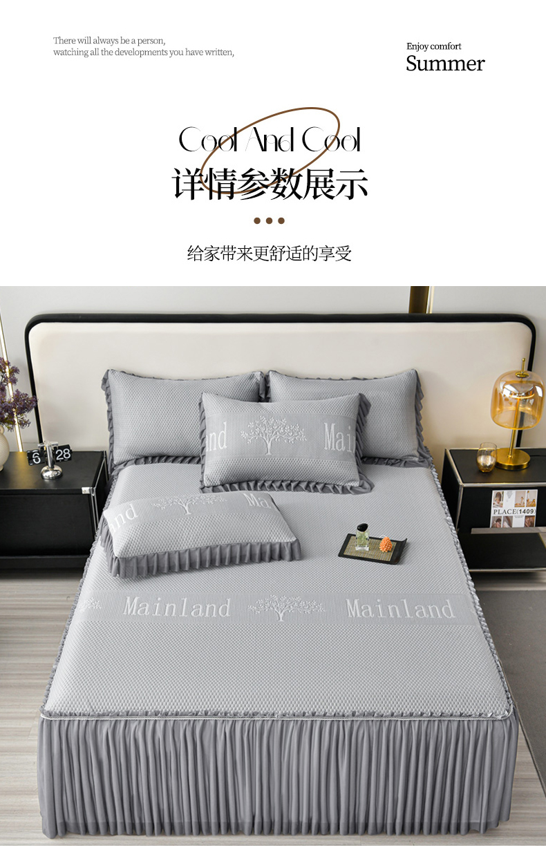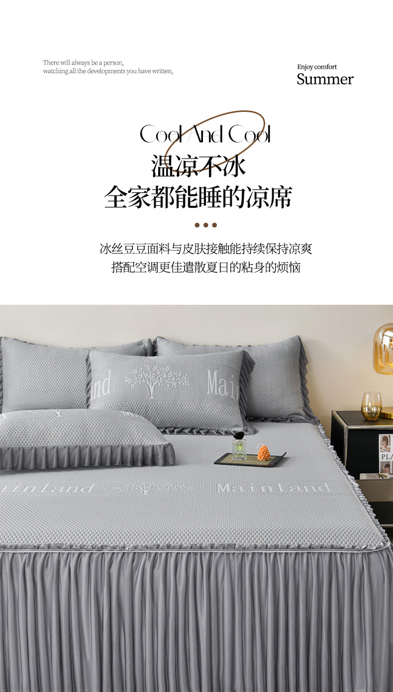 商品名称:星窝家纺 2026新款冰豆豆床裙款凉席 灰调树影